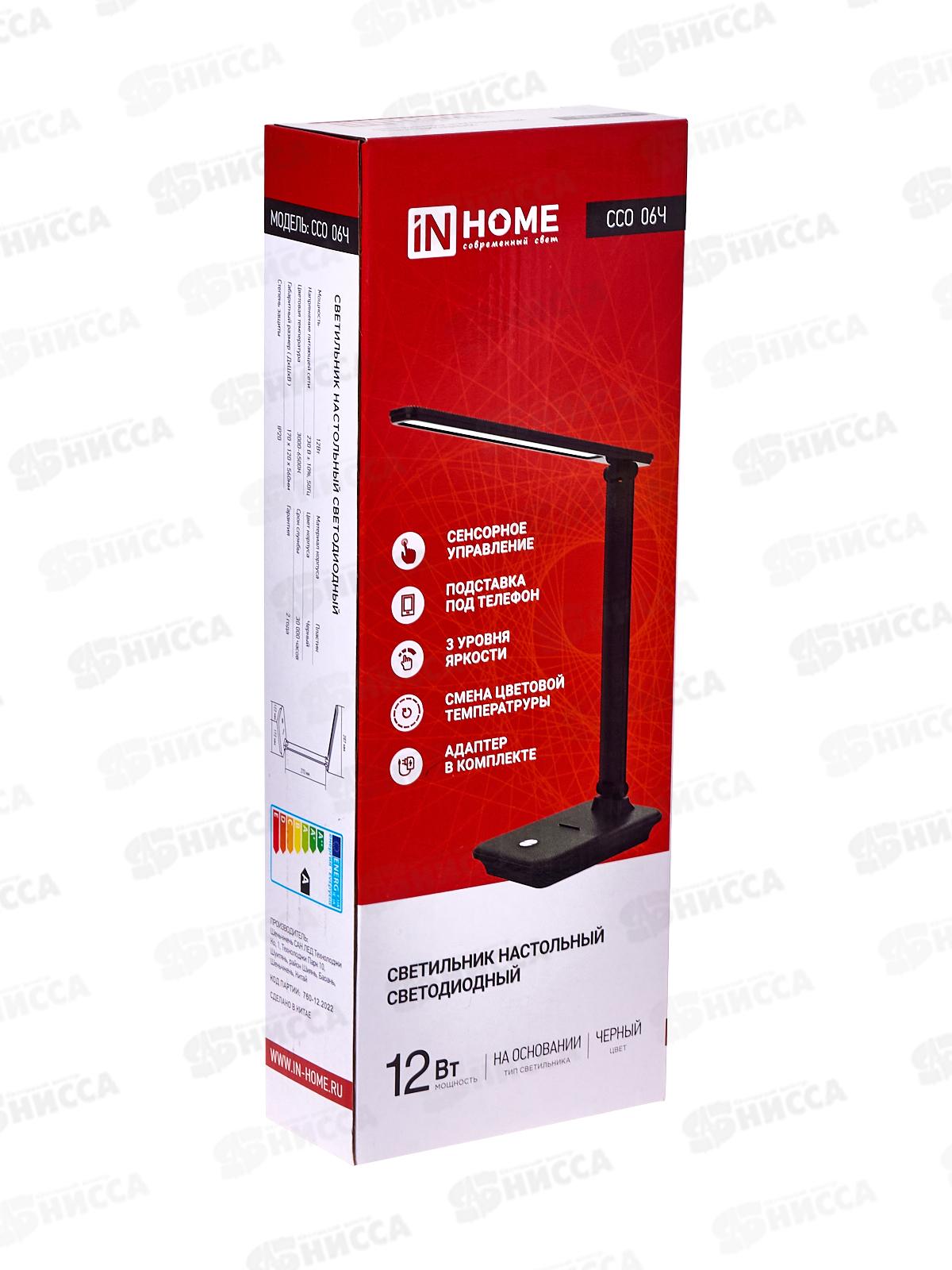 Лампа настольная светодиодная IN HOME ССО-06Ч 12Вт сенсор, подставка под телефон, черная