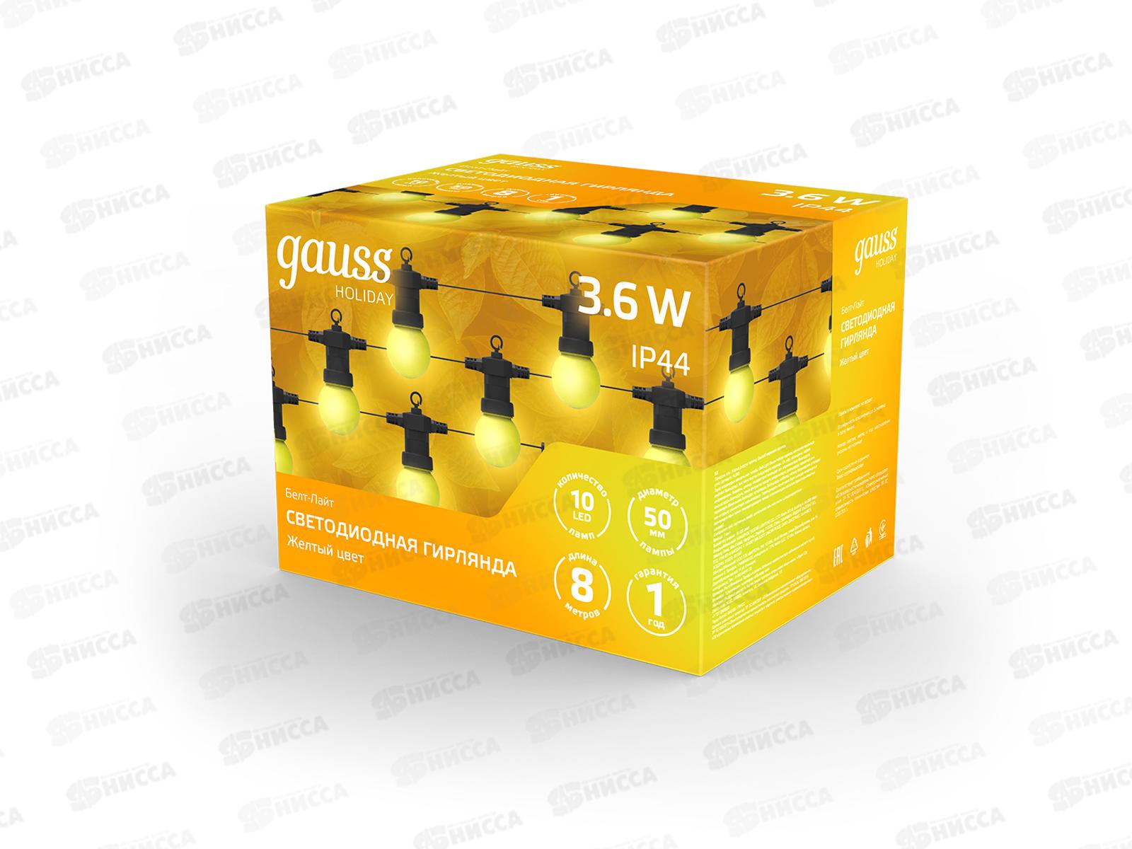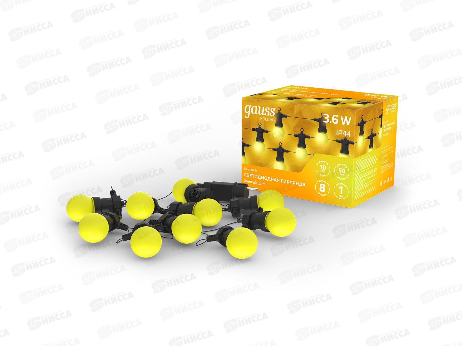 Гирлянда светодиодная GAUSS Белт Лайт Holiday, 10 ламп, 7,7 м, жёлтый, HL065 *6