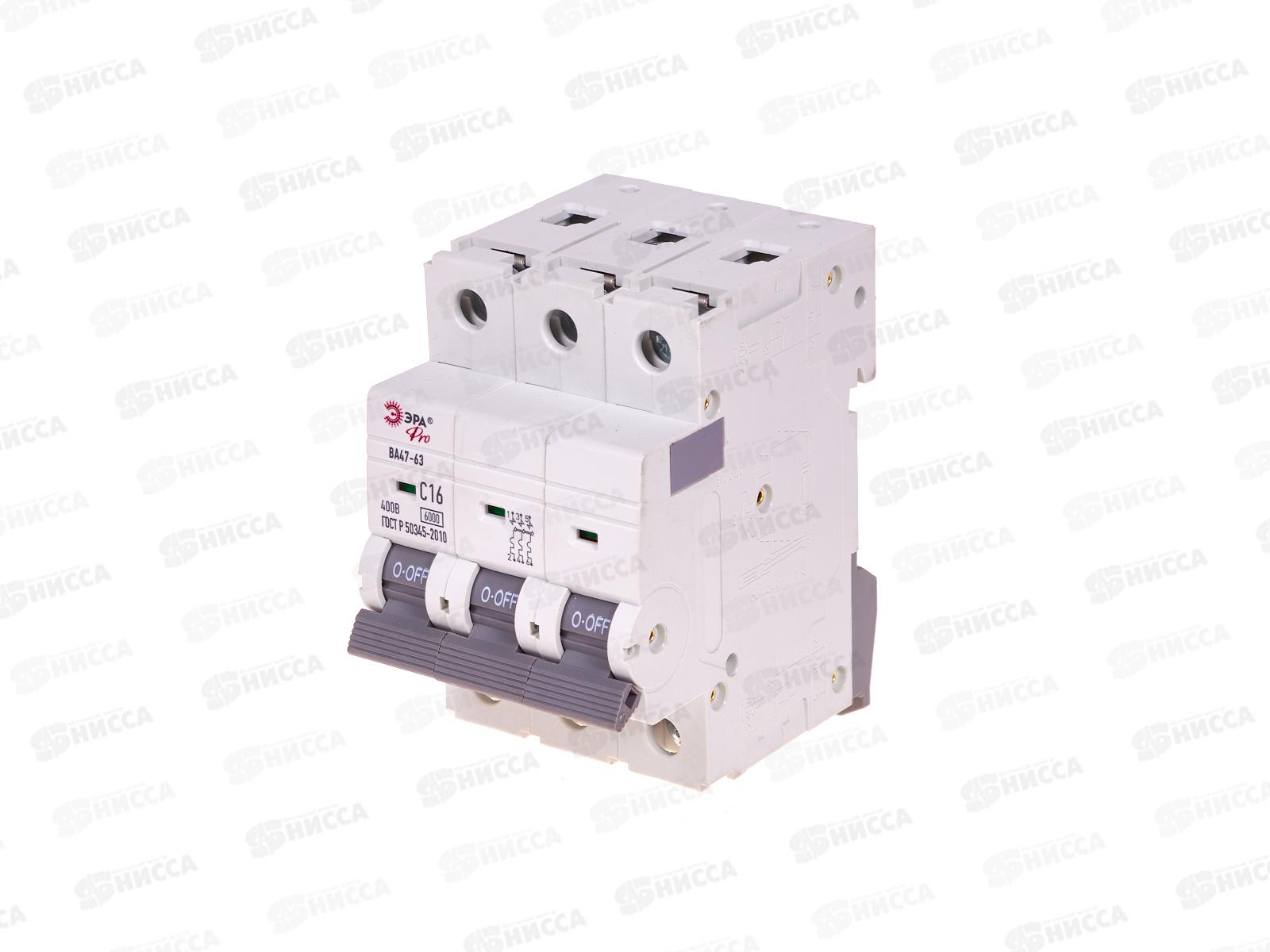 Автоматический выключатель ВА47-63 3P 16А 4,5кА C ЭРА Pro, VA63-3P16C6 *4/40