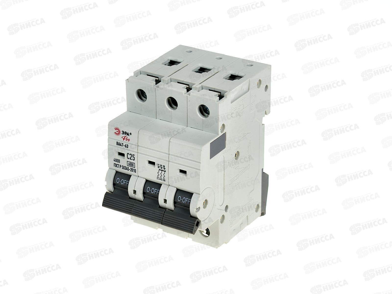 Автоматический выключатель ВА47-63 3P 25А 4,5кА C ЭРА Pro, VA63-3P25C6 *4/40