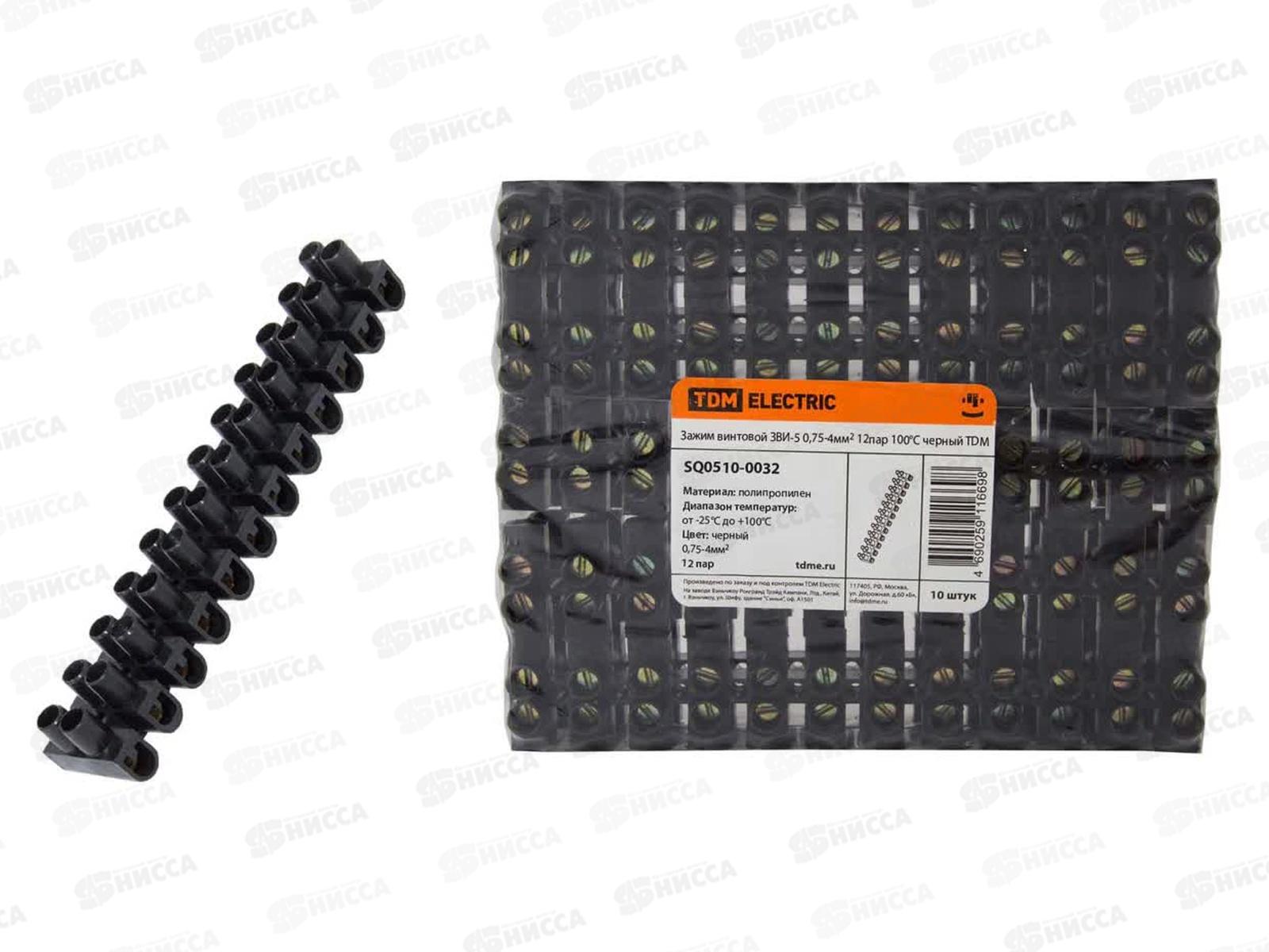 Зажим винтовой TDM ЗВИ-5 п/п 0,75-4кв.мм 12пар 100°C черный, инд.упаковка, 0051