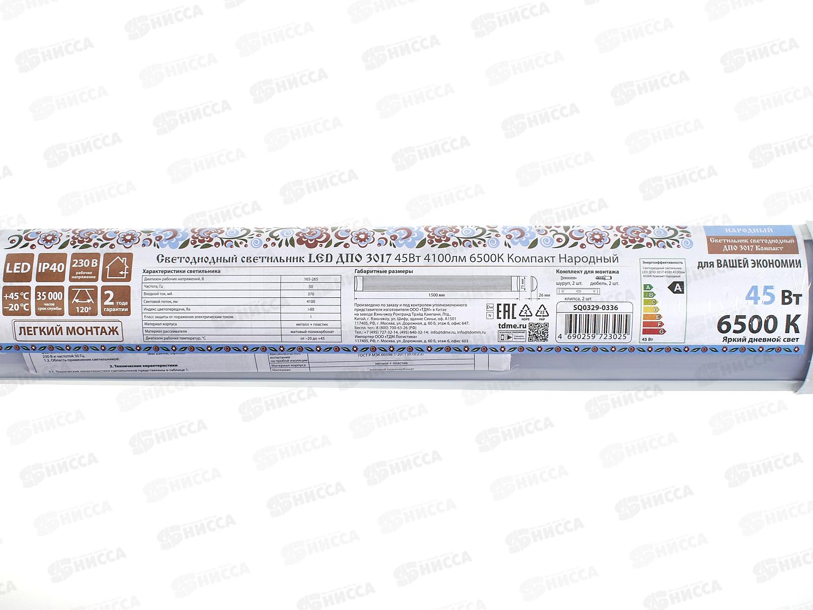Светодиодный светильник LED ДПО 3017 45Вт 4100лм 6500К Народный, 0336 *20