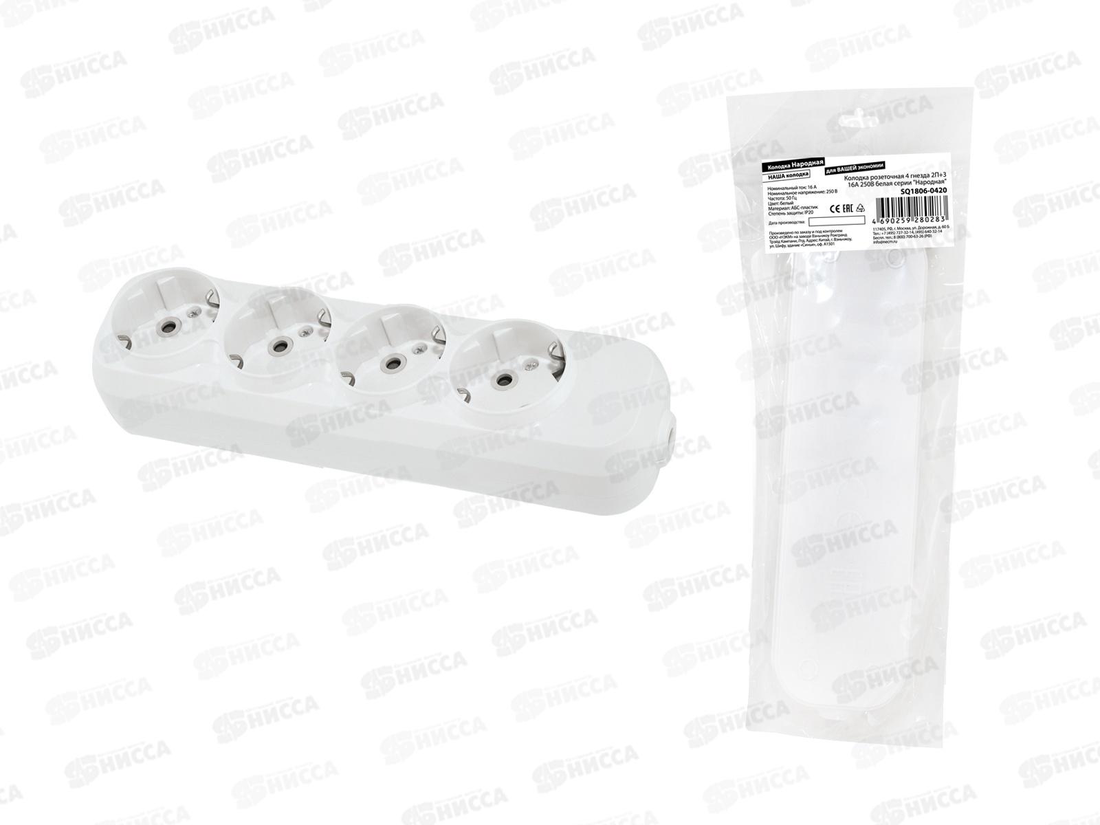 Колодка розеточная 4 гнезда 2П+3 16А 250В белая серии "Народная" К4-31, 0420 *100