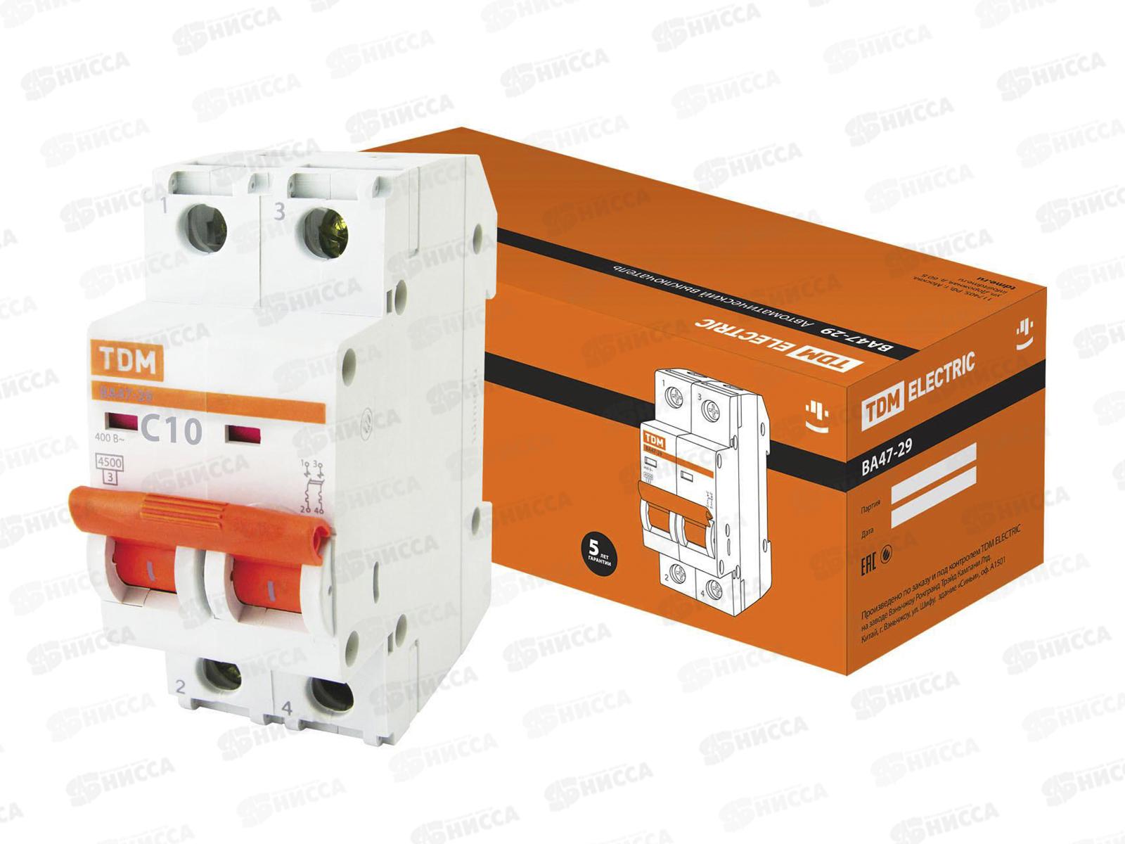 Автоматический выключатель ВА47-29 2P 10А 4,5кА C TDM, 0091 *12/120