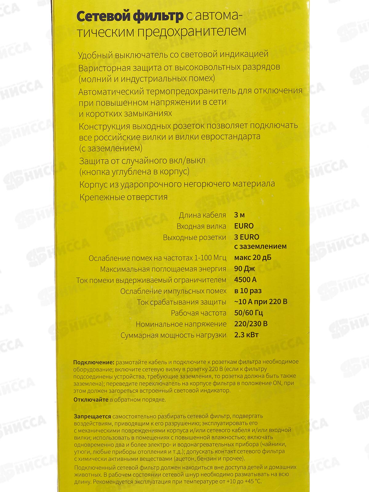 Сетевой фильтр Perfeo "POWER+" 3м, 3 розетки, черный