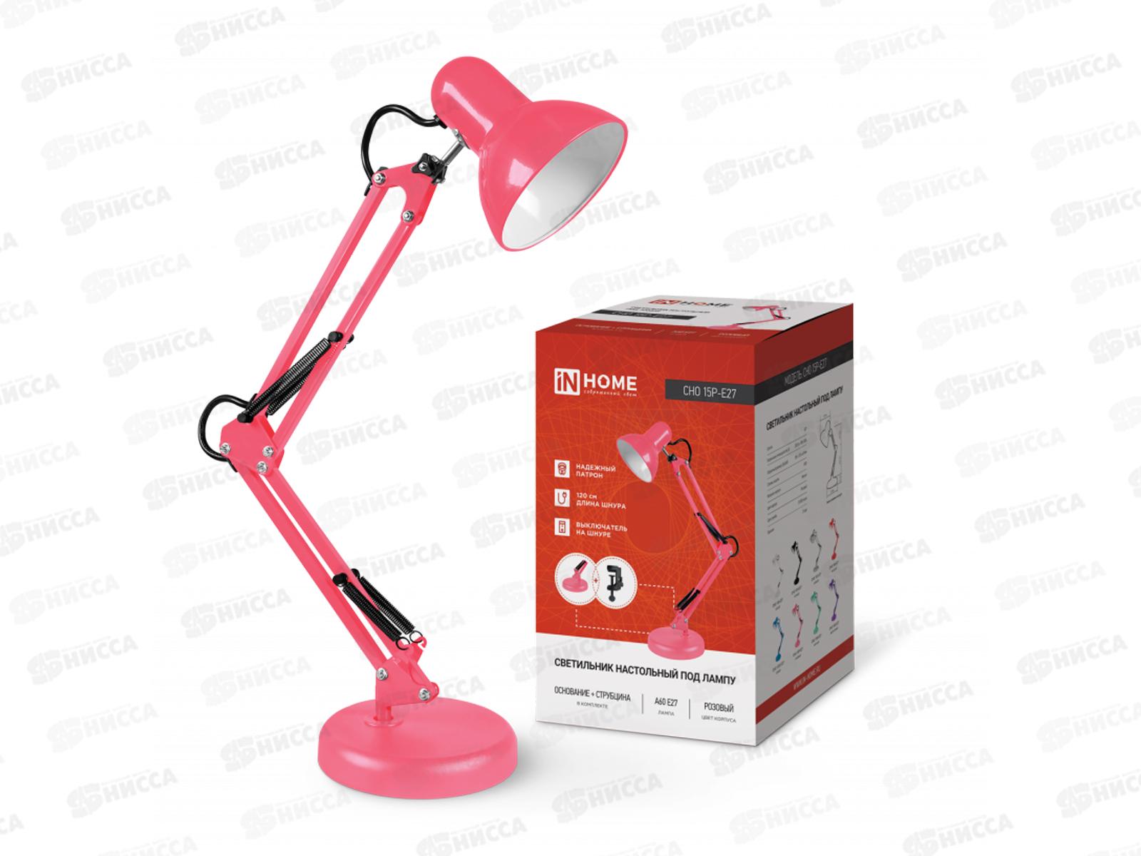 Лампа настольная под лампу СНО-15Р 60 Вт Е27 на основании со струбциной, IN HOME (розовый)