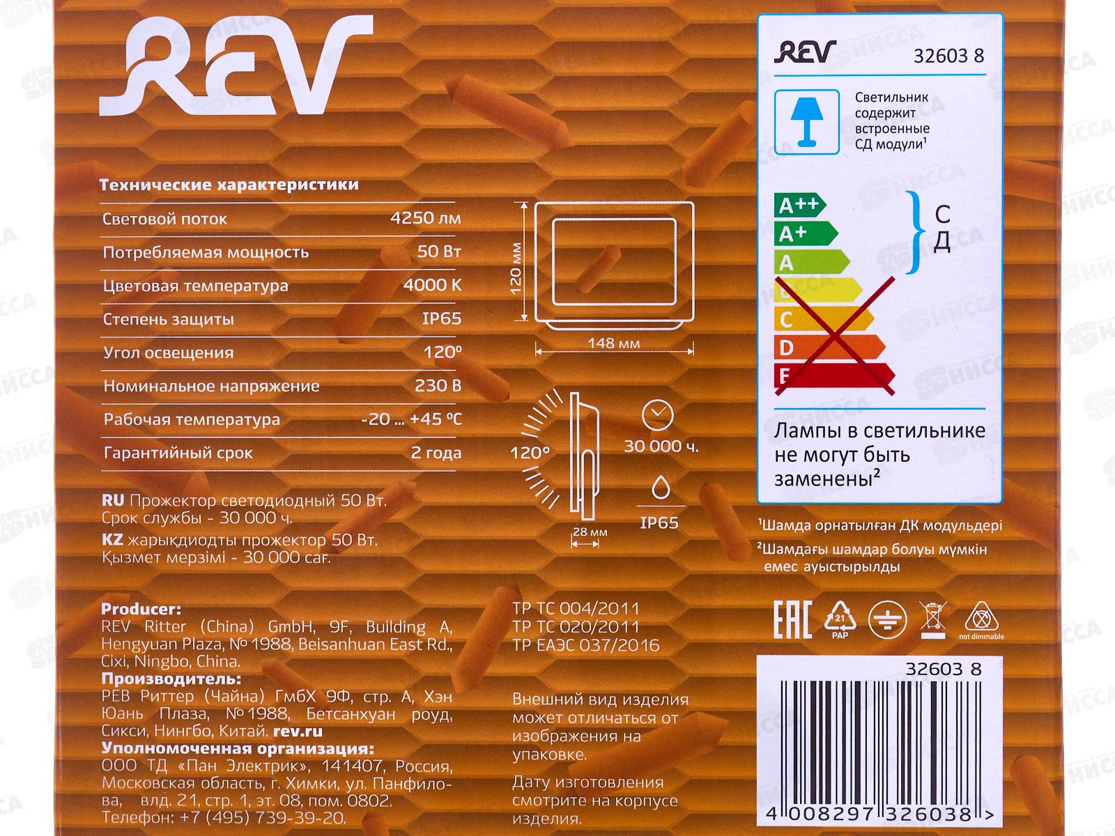 Прожектор светод. REV Ultra slim 50Вт 4000K, 32603 8Т