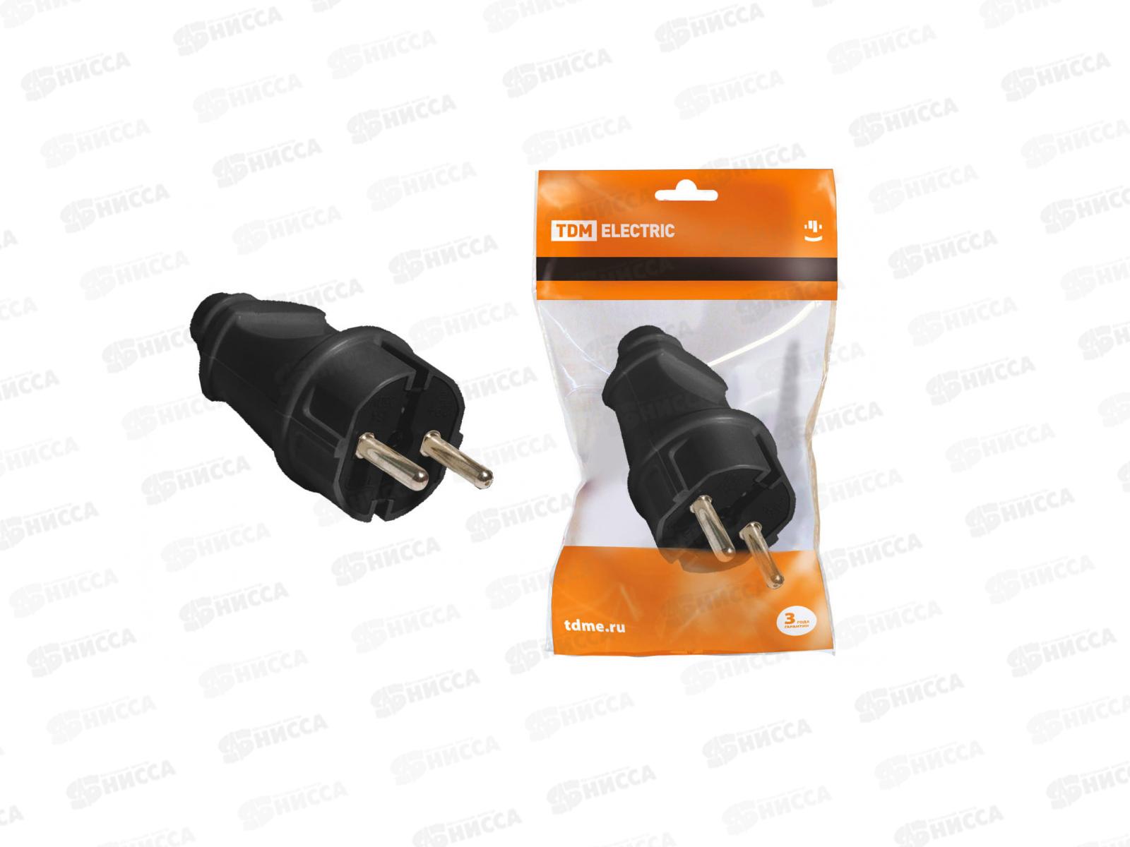 Вилка TDM прямая с заземлением черная 16А 250В *25