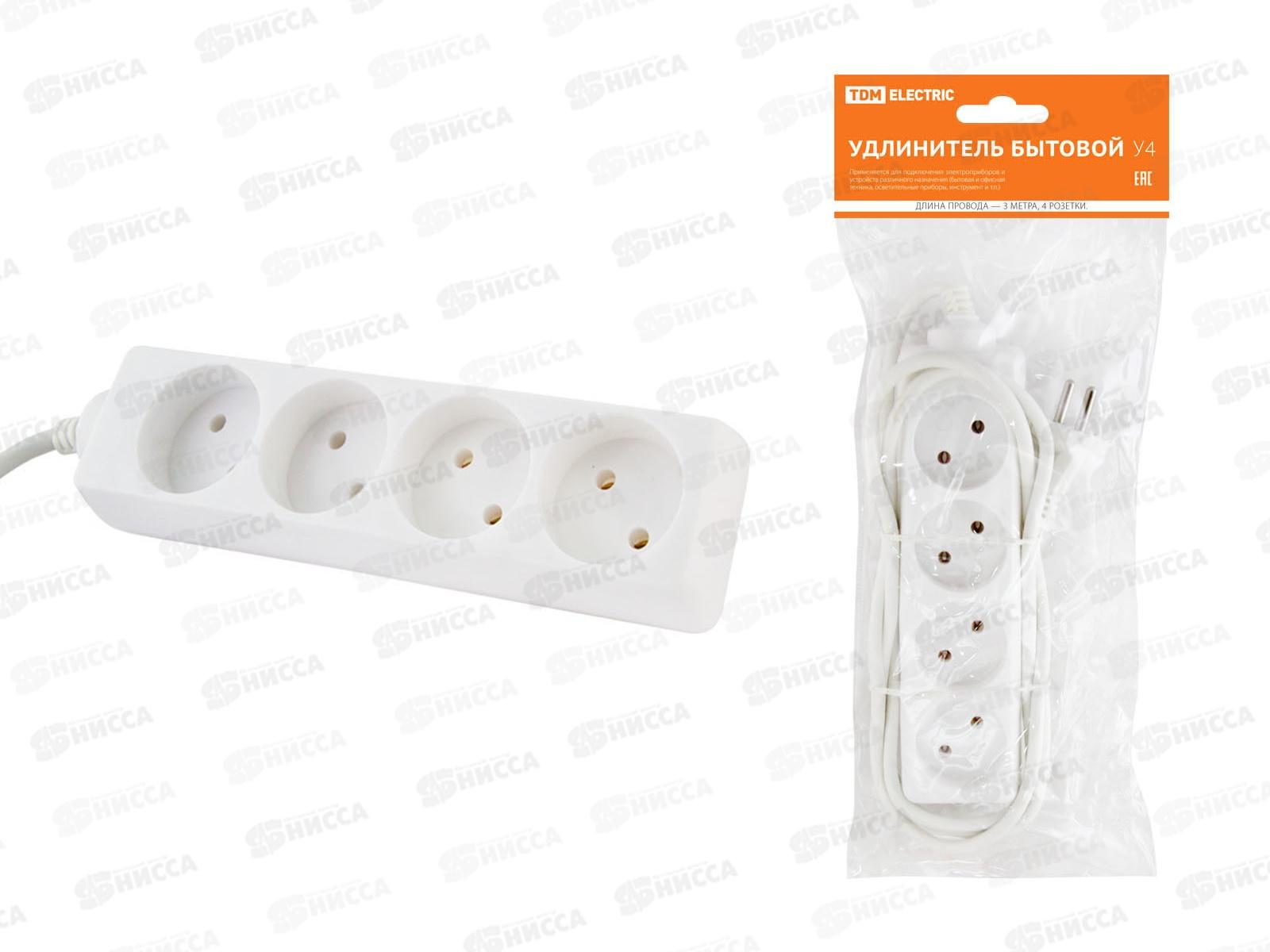Удлинитель TDM У4 4гнезда, 3м, ПВС 2*0.75кв.мм 10А, 0211 *20
