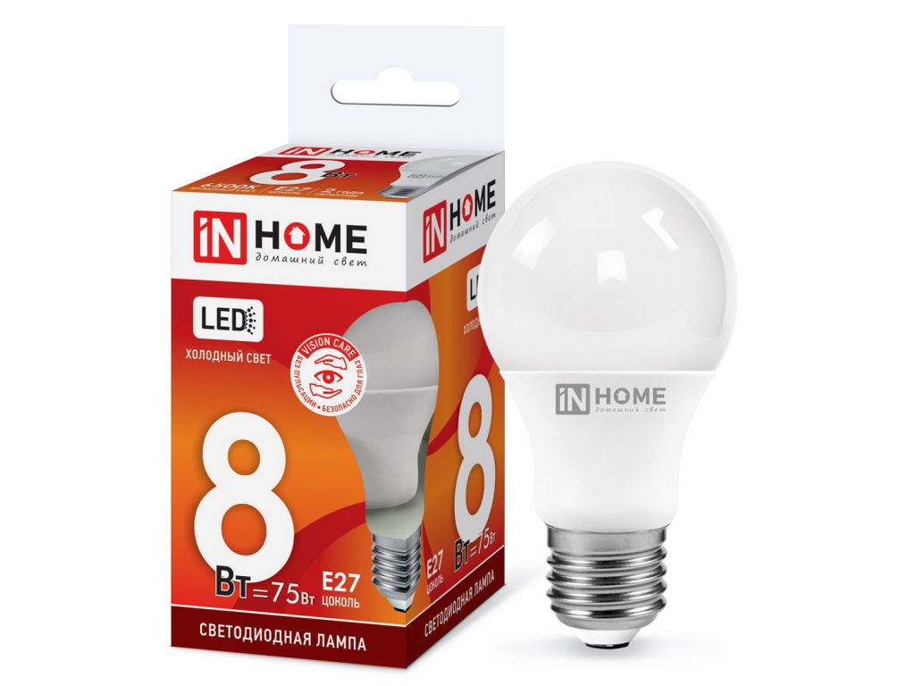 Лампа светодиодная IN HOME LED-A60-VC 8Вт E27 6500К 720Лм *10/100