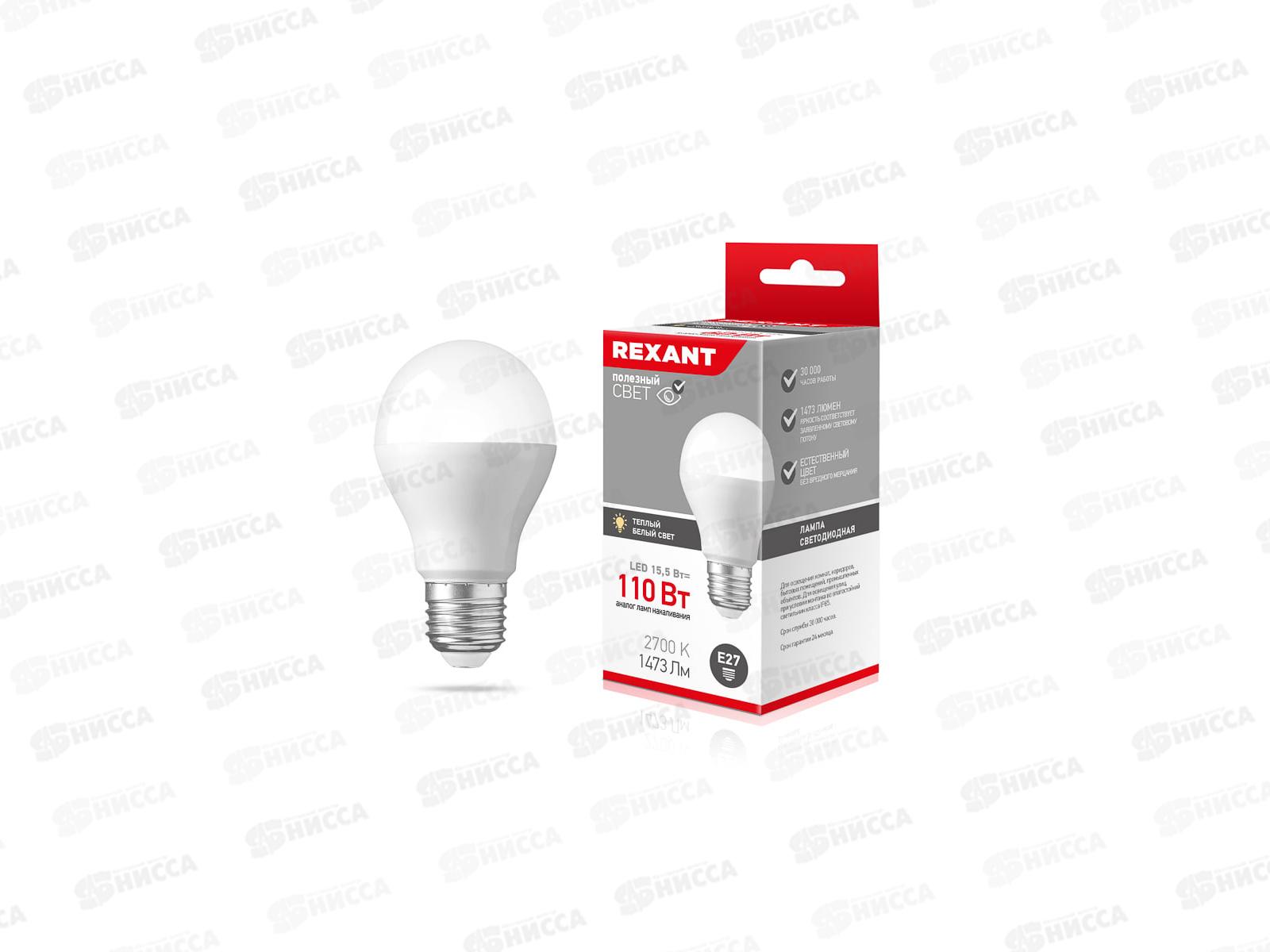 Лампа светодиодная REXANT A60 15,5Вт E27 2700К, 604-008