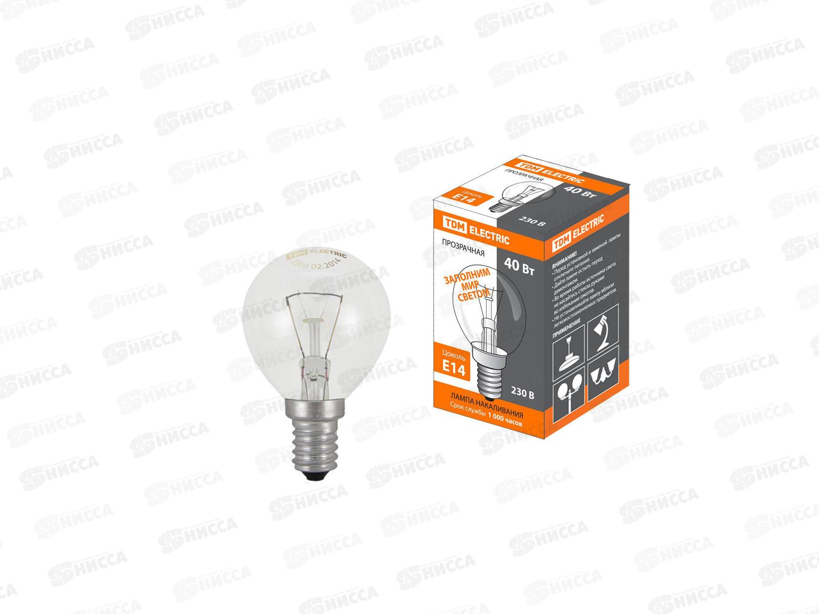 Электрическая лампочка 40 Вт TDM Е14, шар прозрачный, 0001 *10/100