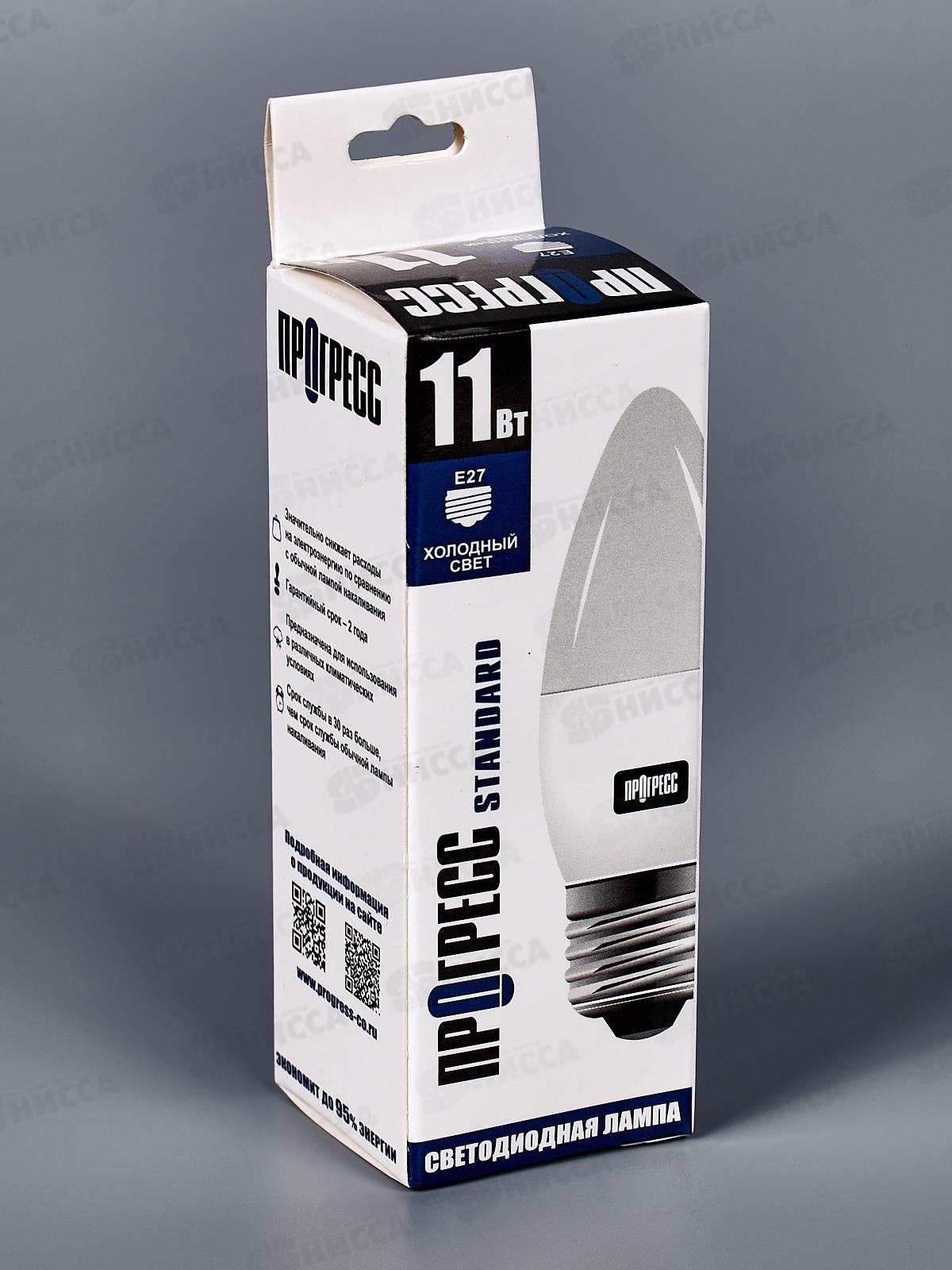 Лампа светодиодная Прогресс Standard 11Вт E27 С37 Свеча ярк свет *10/100