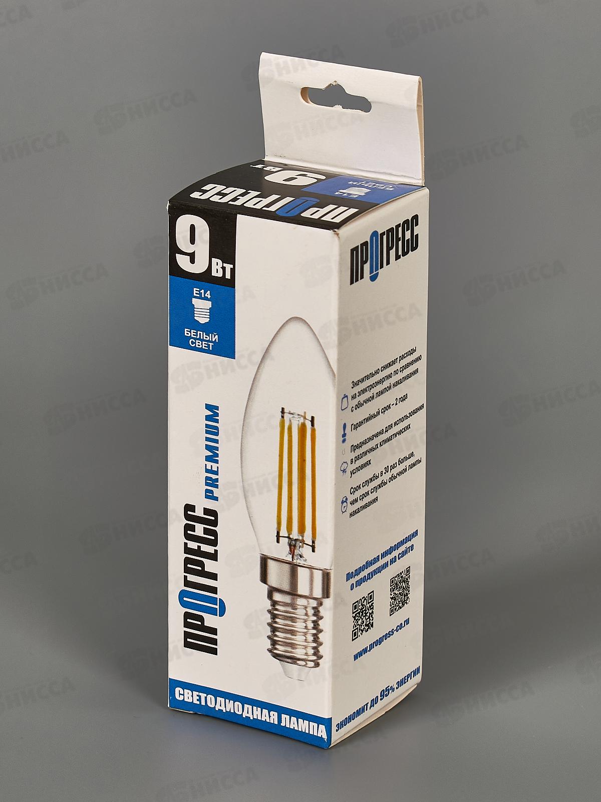 Лампа светодиодная Прогресс Premium 9Вт E14 С35F Свеча 4000К *100