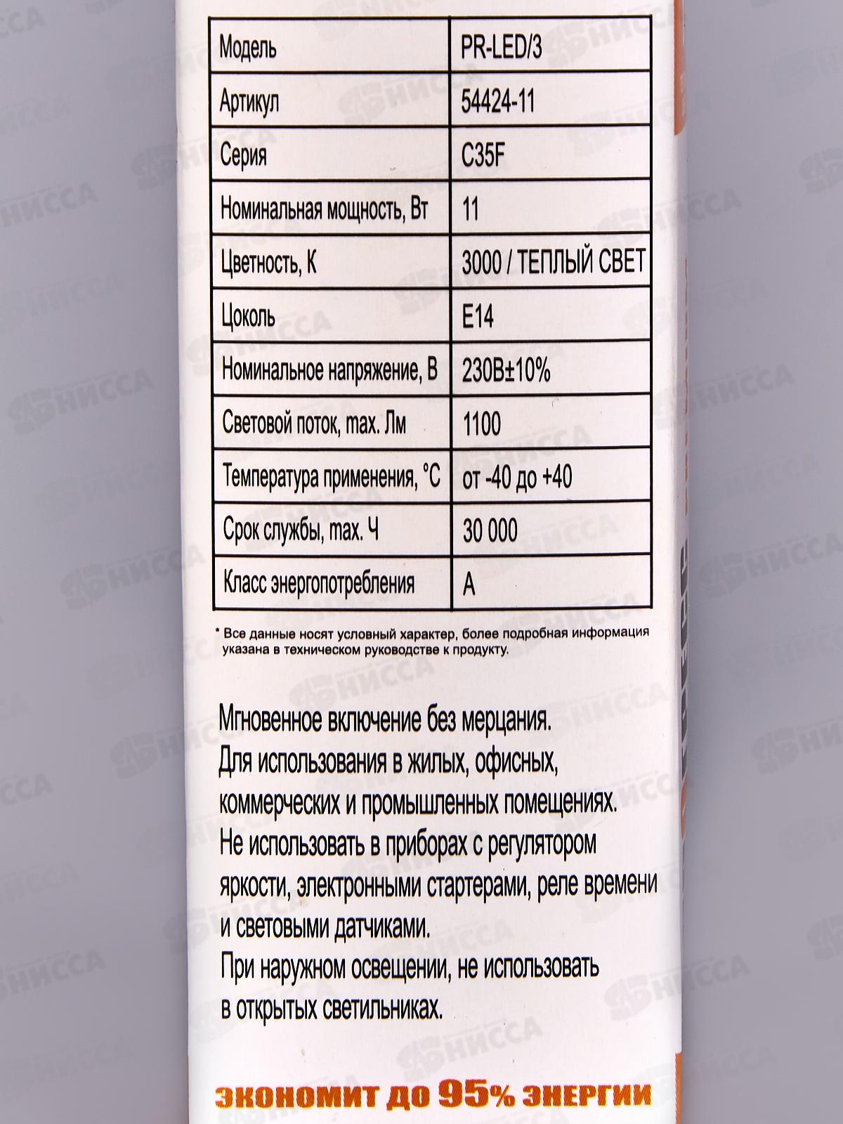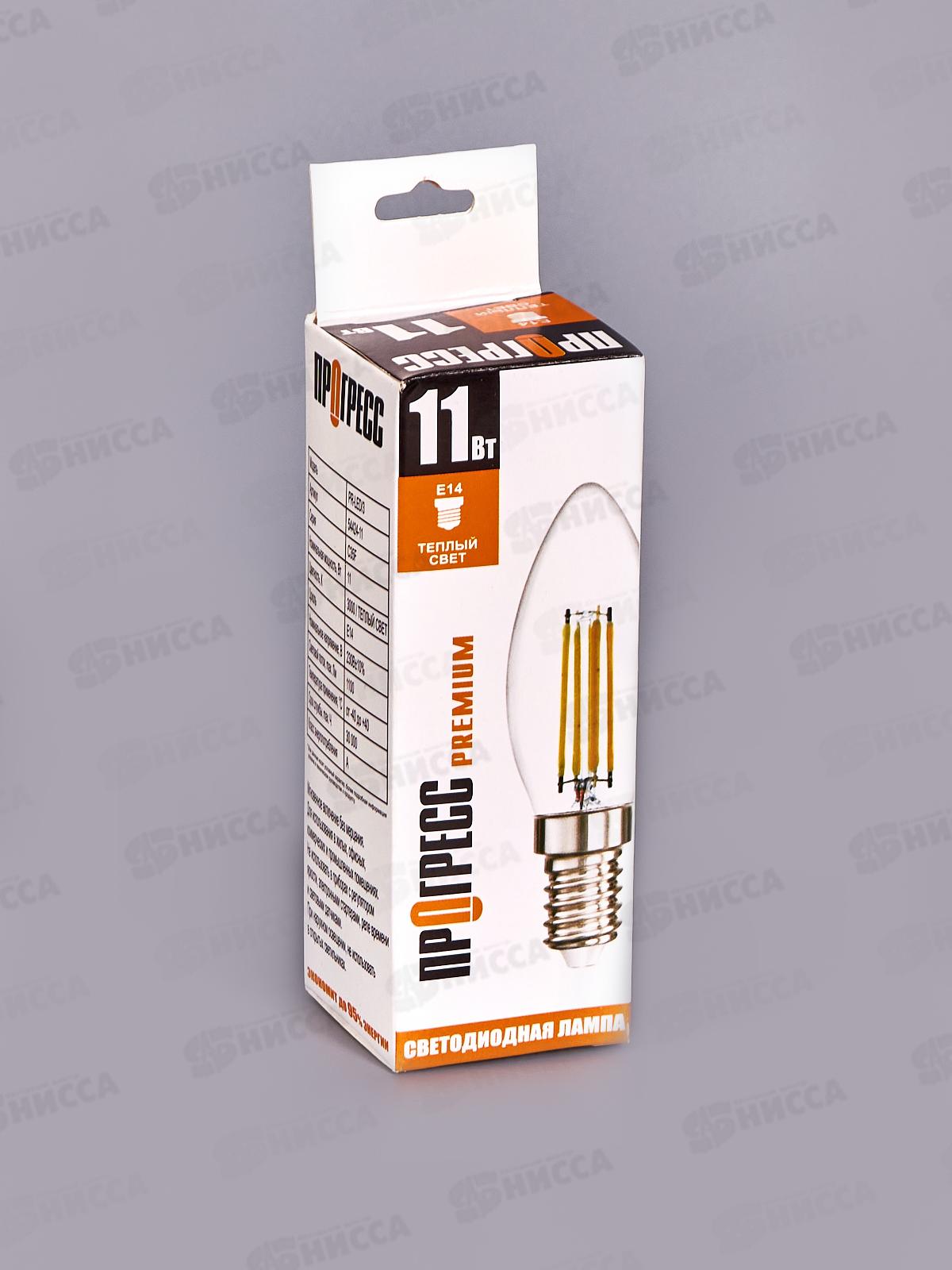 Лампа светодиодная Прогресс Premium 11Вт E14 С35F Свеча 3000К *10/100