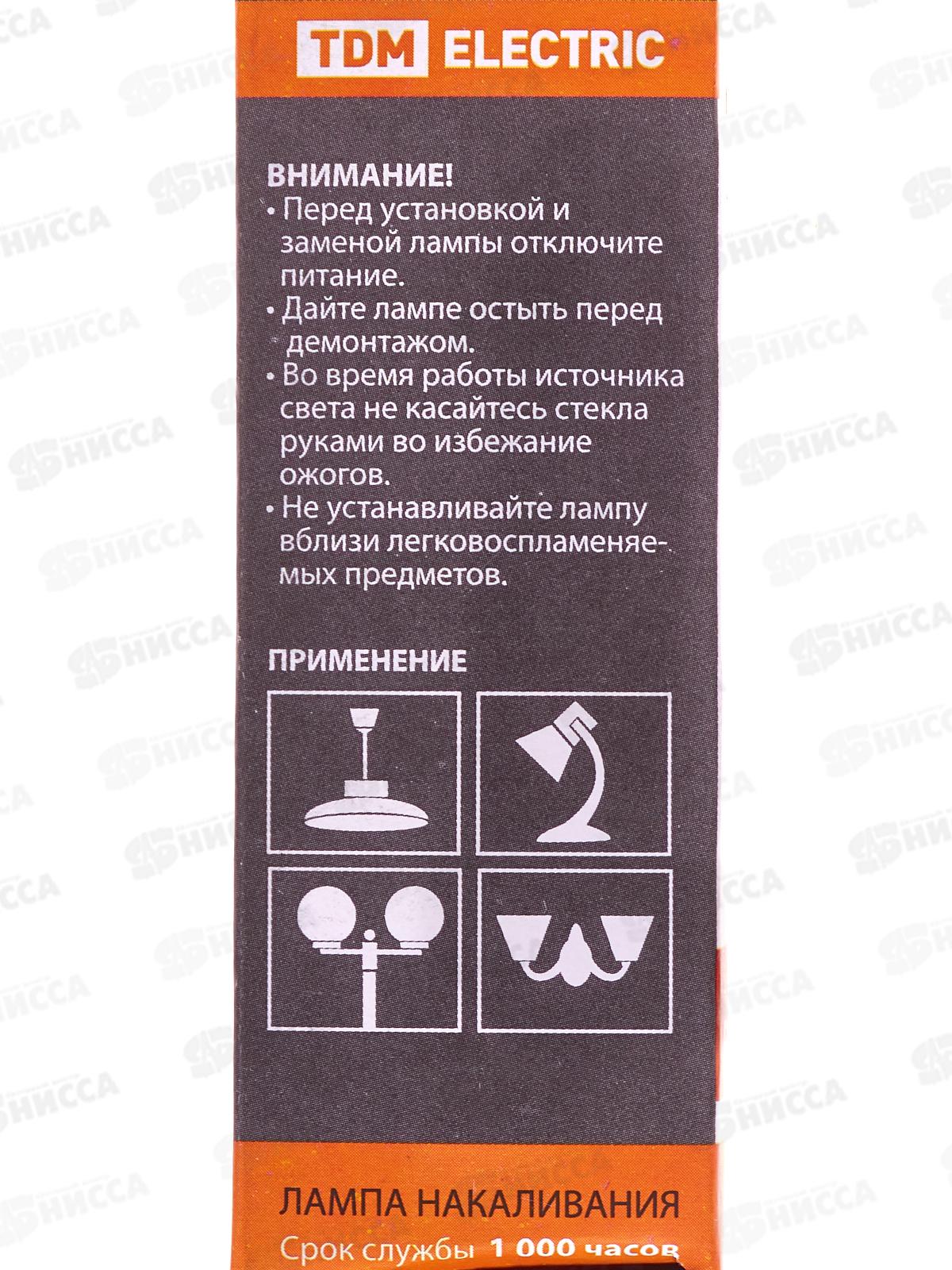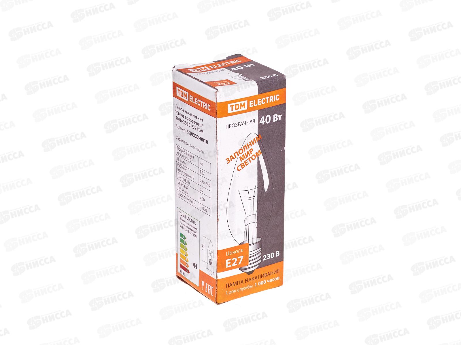 Электрическая лампочка 40 Вт TDM E27, свеча прозрачная, 0010 *100