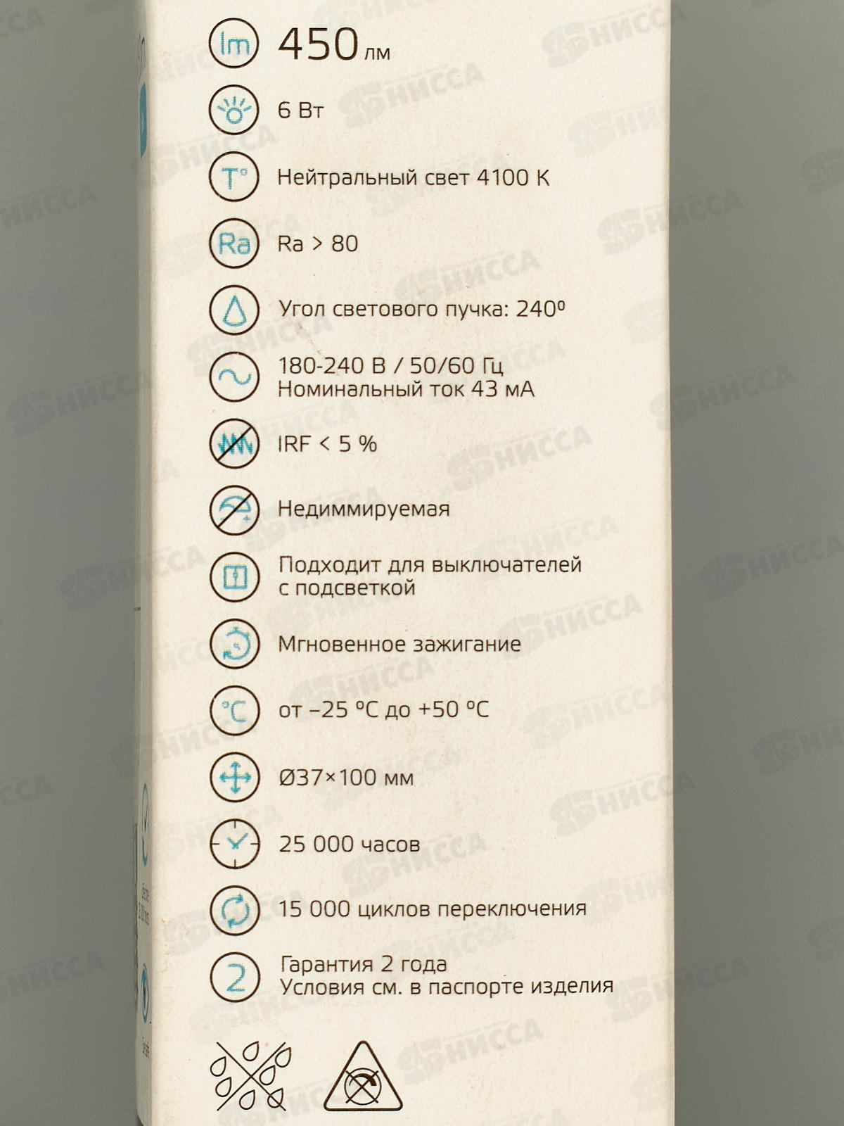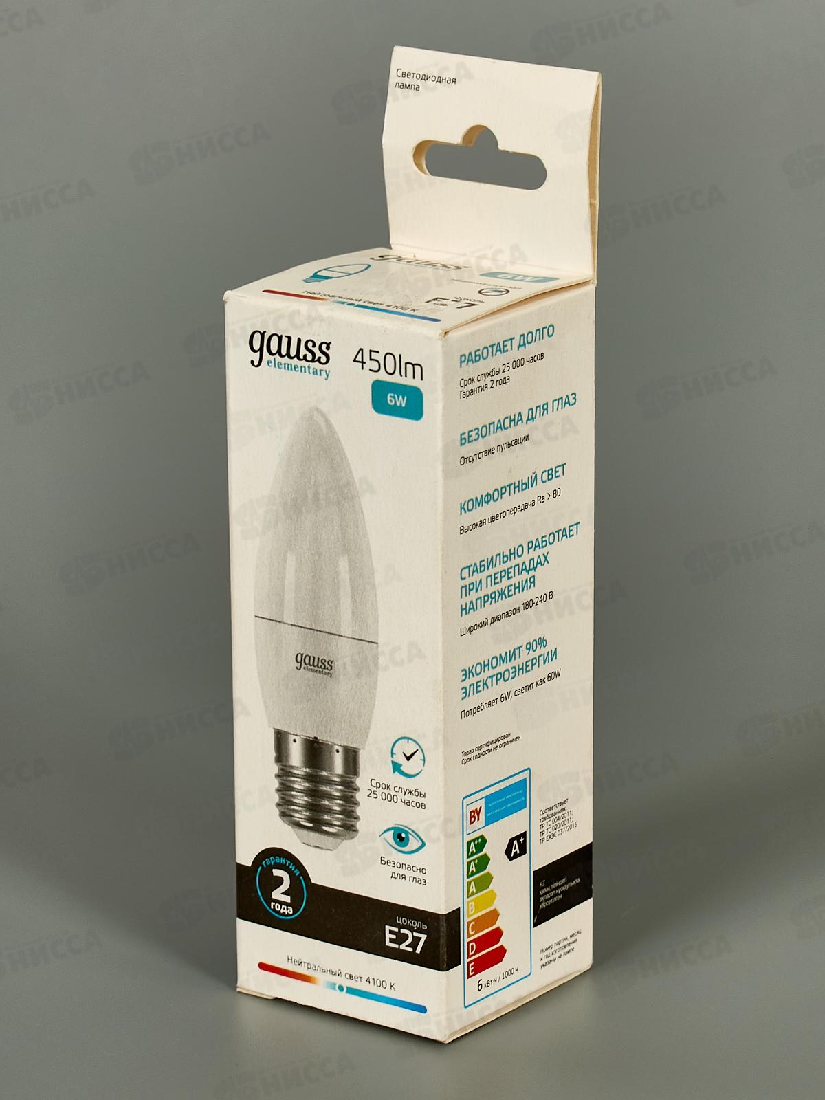 Лампа светодиодная Gauss Elementary Свеча 6Вт 450Lm 4100K Е27 33226 *50