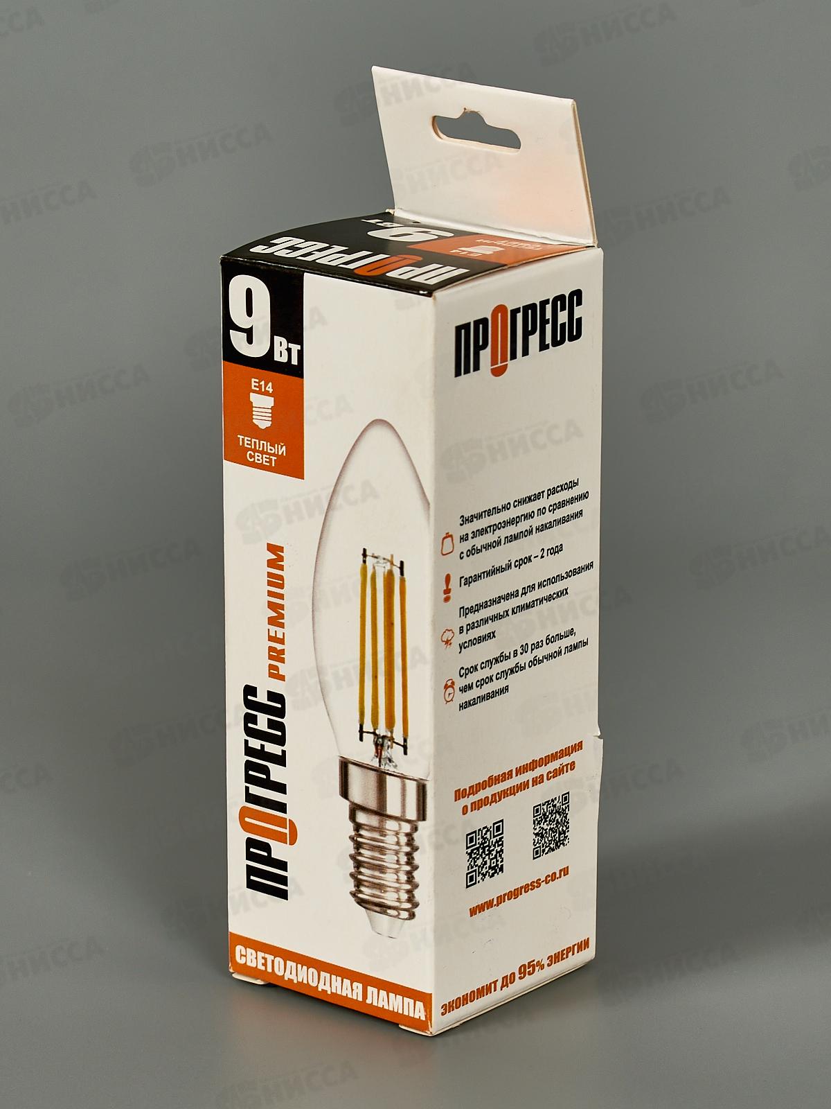 Лампа светодиодная Прогресс Premium 9Вт E14 С35F Свеча 3000К *10/100