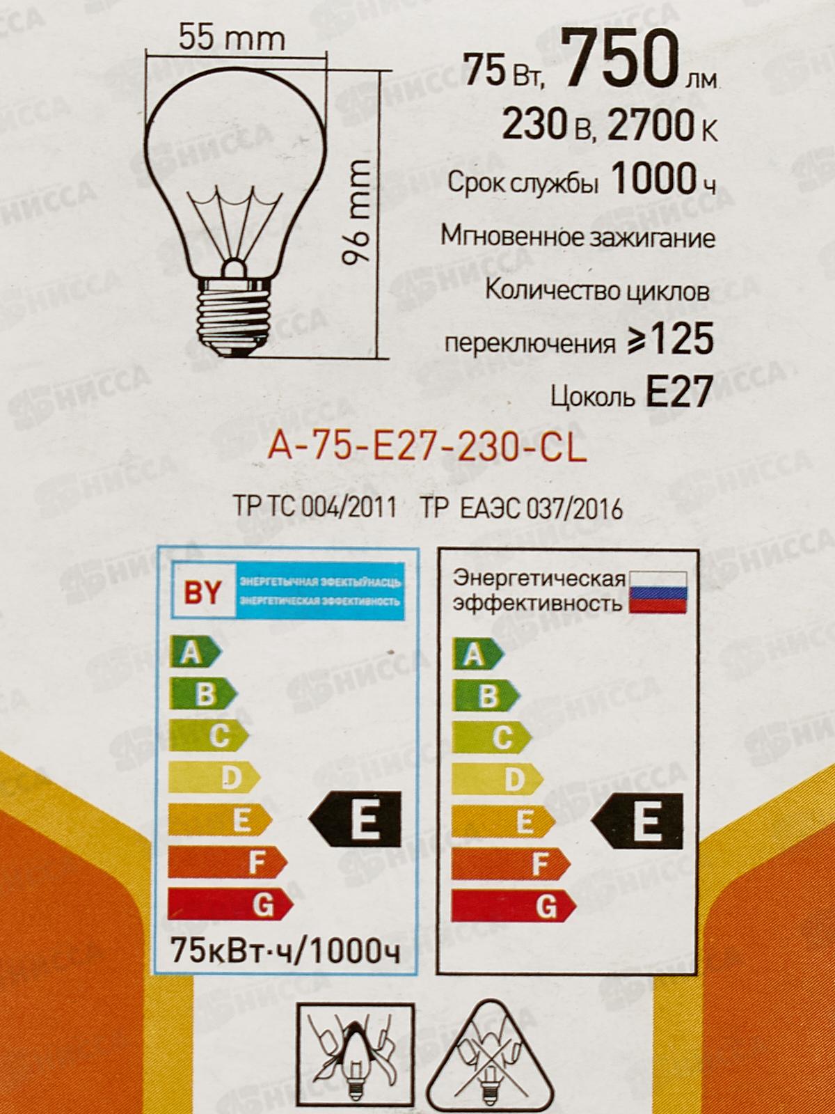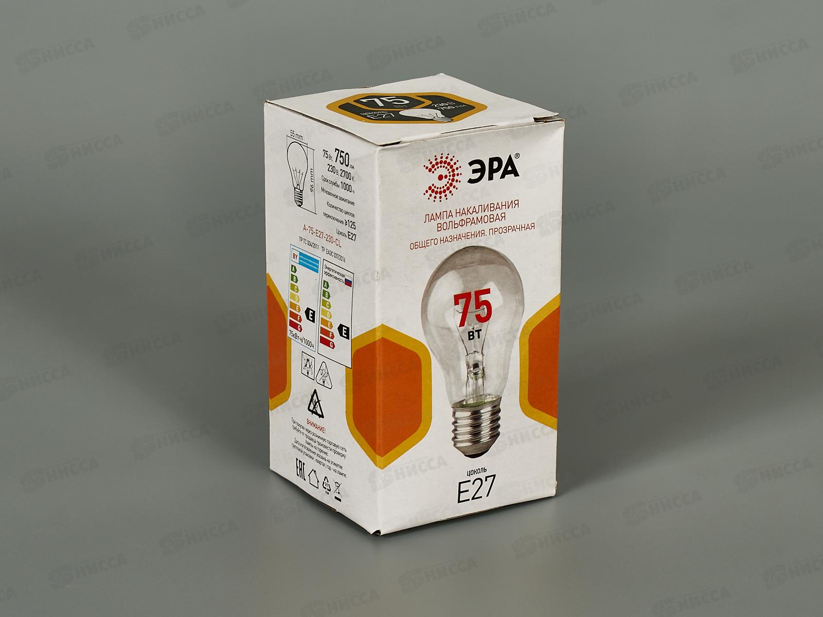Эл.ламп. 75 Вт ЭРА E27 А55 прозрачная 750Лм, цветная коробка *10/100