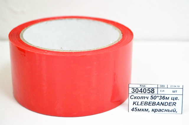 Скотч 48*66м цветной KLEBEBANDER 45мкм, красный, арт 600 *6/36