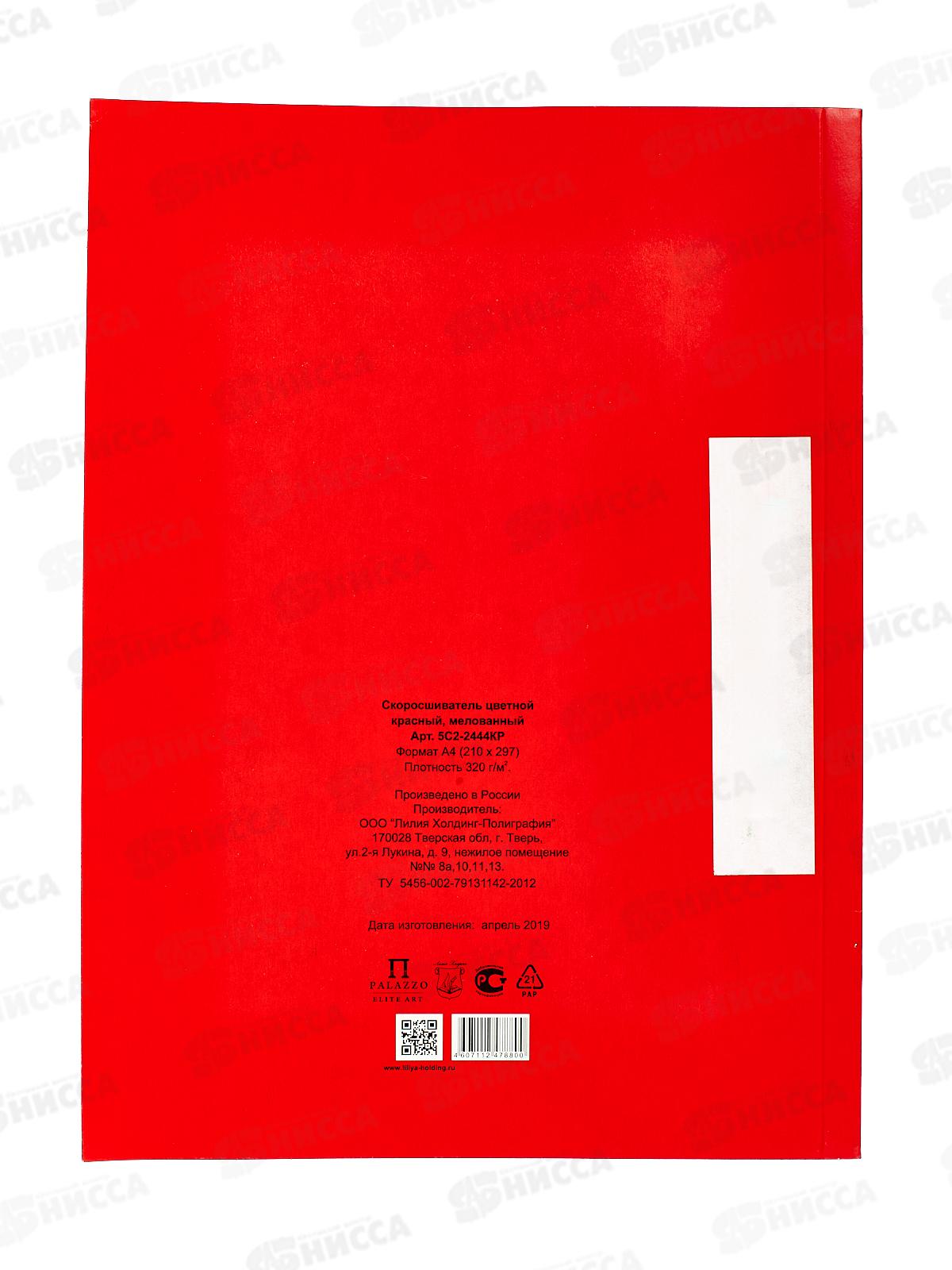 Скоросшиватель цветной ЛХ красный, мелованный (5С2-2444Ц) *100