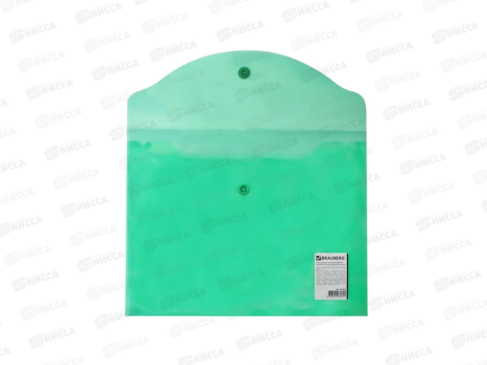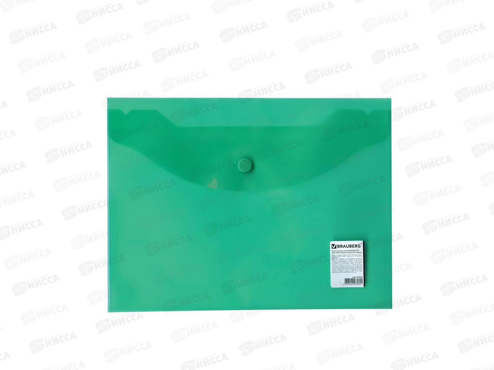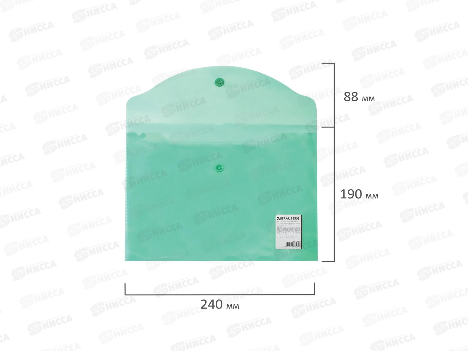 Папка с кнопкой BRAU 224025 А5 зелёная до 100л, 0,15мм *10/100