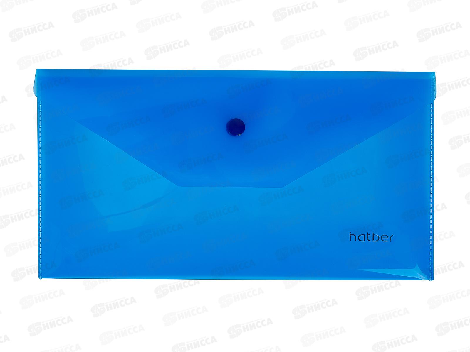 Папка-конверт пл. на кнопке Hatber 224*119 мм син. 00002