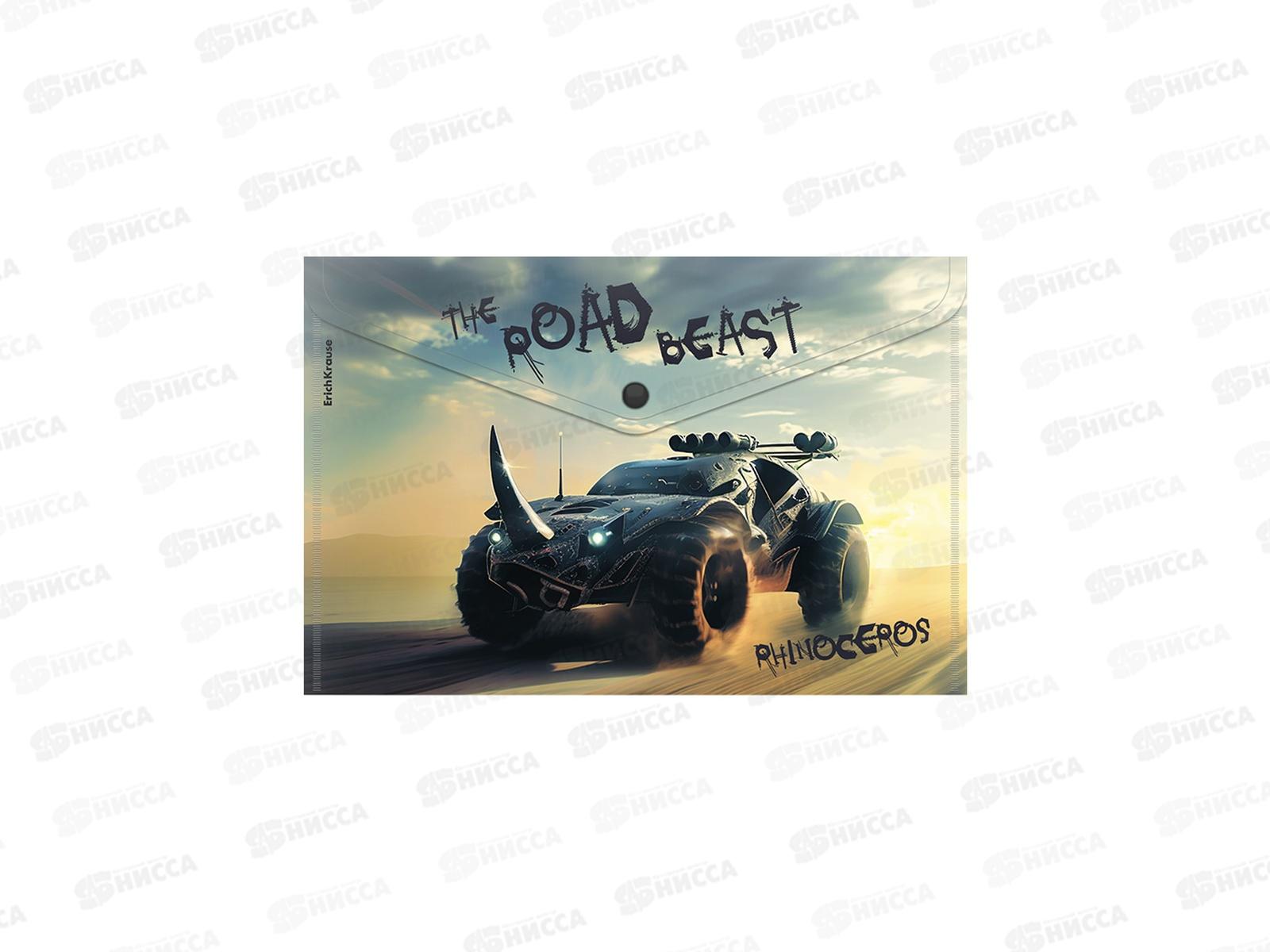 Папка-конверт пл. на кнопке EK Road Beast А4, асс. 63510 *12