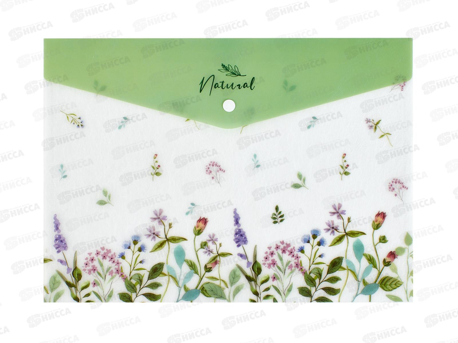Папка-конверт пл. на кнопке Hatber А4 Natural flowers 33479 *12