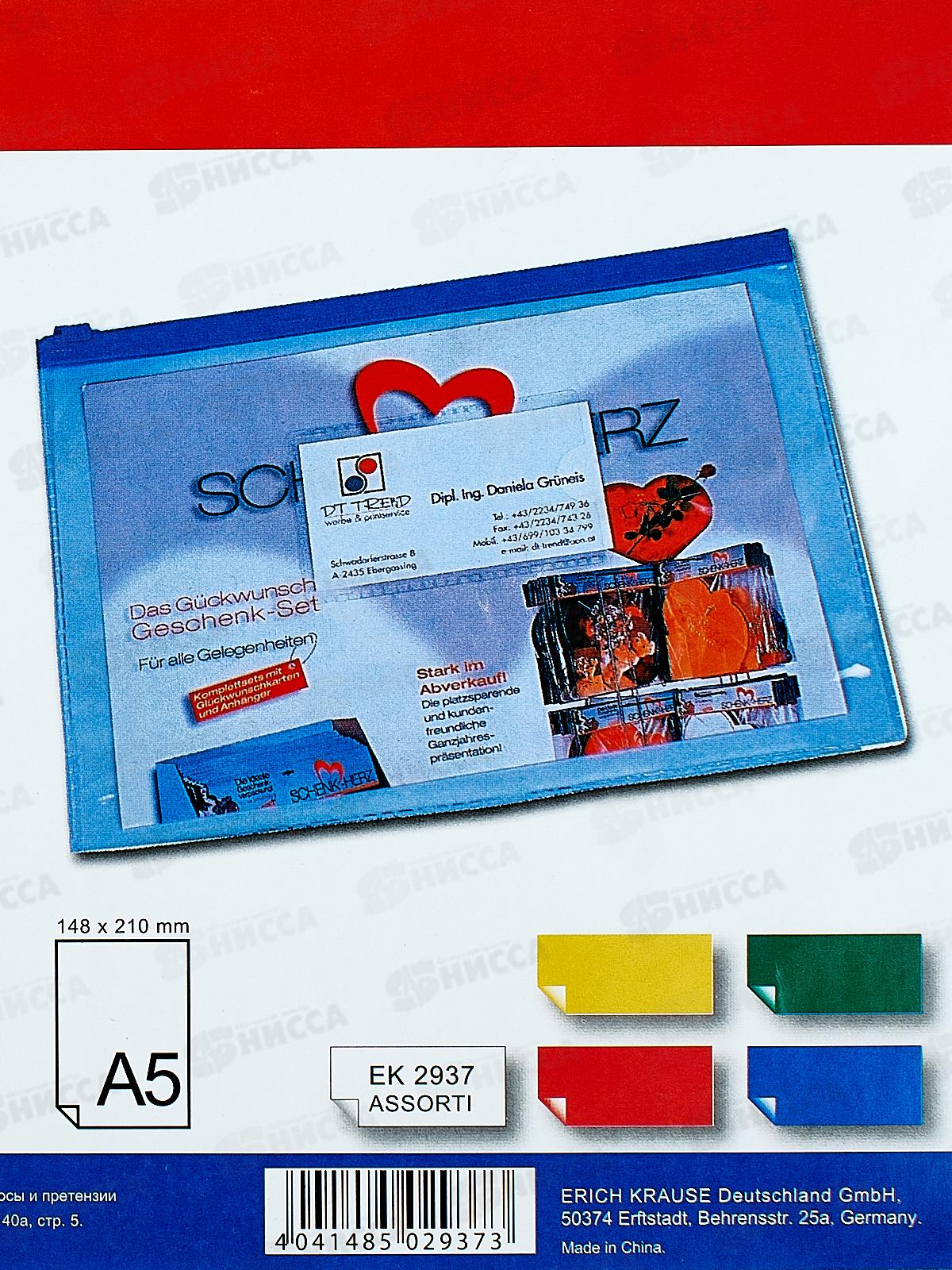 Папка на молнии EK А5 прозрачная, плотная, Zip, 2937 *12/240/960