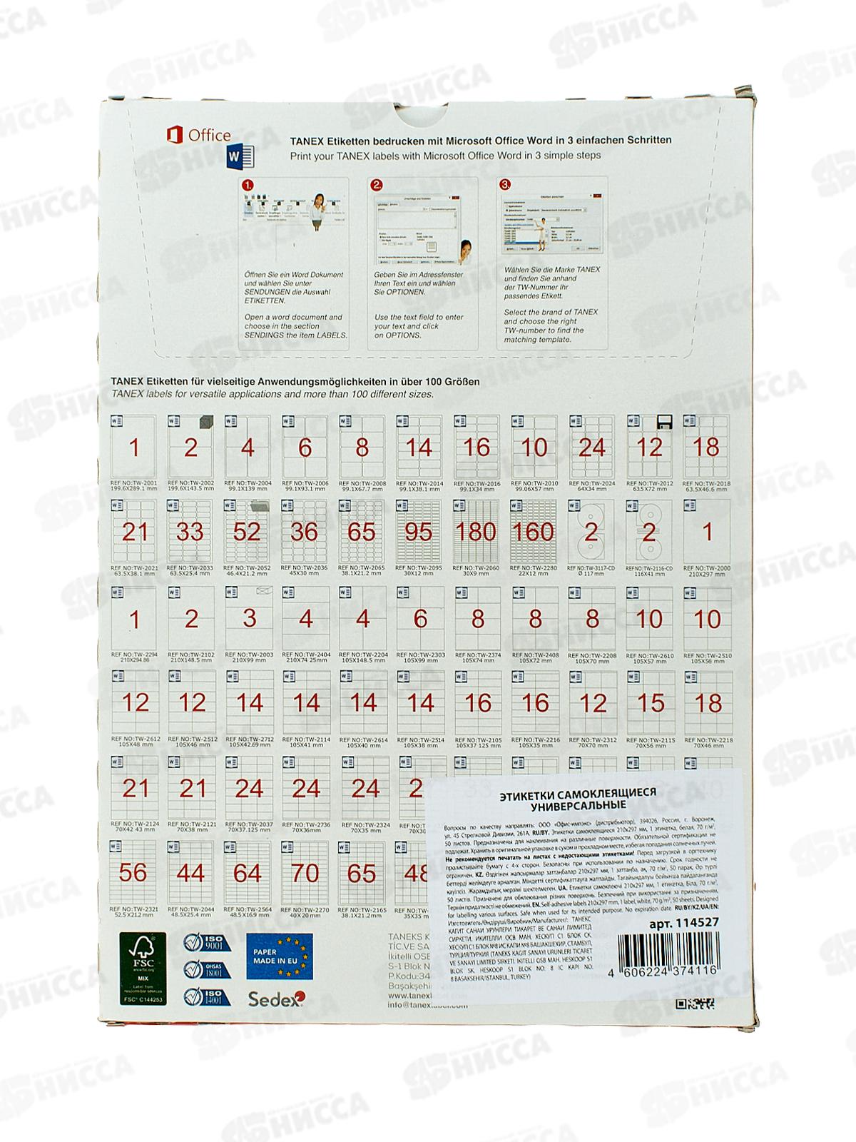 Универсальные самоклеящиеся этикетки TANEX производятся из высококачественного сырья ведущего европейского производителя UPM-Kymmene, Финляндия. Они дают возможность легко создавать адресные наклейки, номера регистрации, аннотации посредством принтера, который может быть как лазерным, так и струйным.