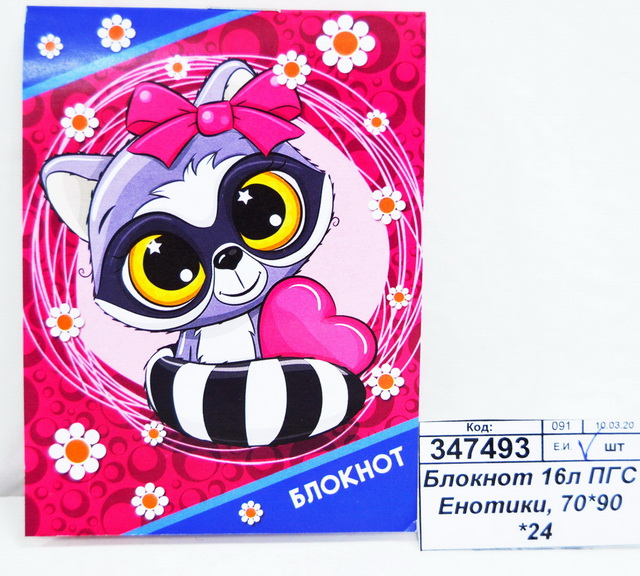 Блокнот 16листов ПГС Енотики, 70*90 *24