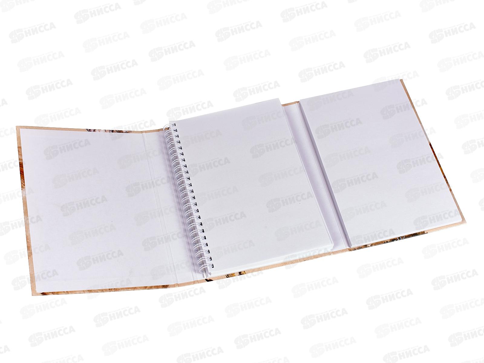 Особенностью этой тетради служит необычная конструкция 'раскладушки' из трех твердых частей обложки и наполнение из двух блоков: 80 листов с металлическим гребнем по длинной стороне для зарисовок и набросков, а также 50 листов на отрывной склейке, который можно использовать по принципу 'нарисовал - оторвал - подарил'. Прочная фиксирующая резинка, выполненная в едином стиле и цветовой гамме изделия, надежно защитит тетрадь от случайного раскрытия.