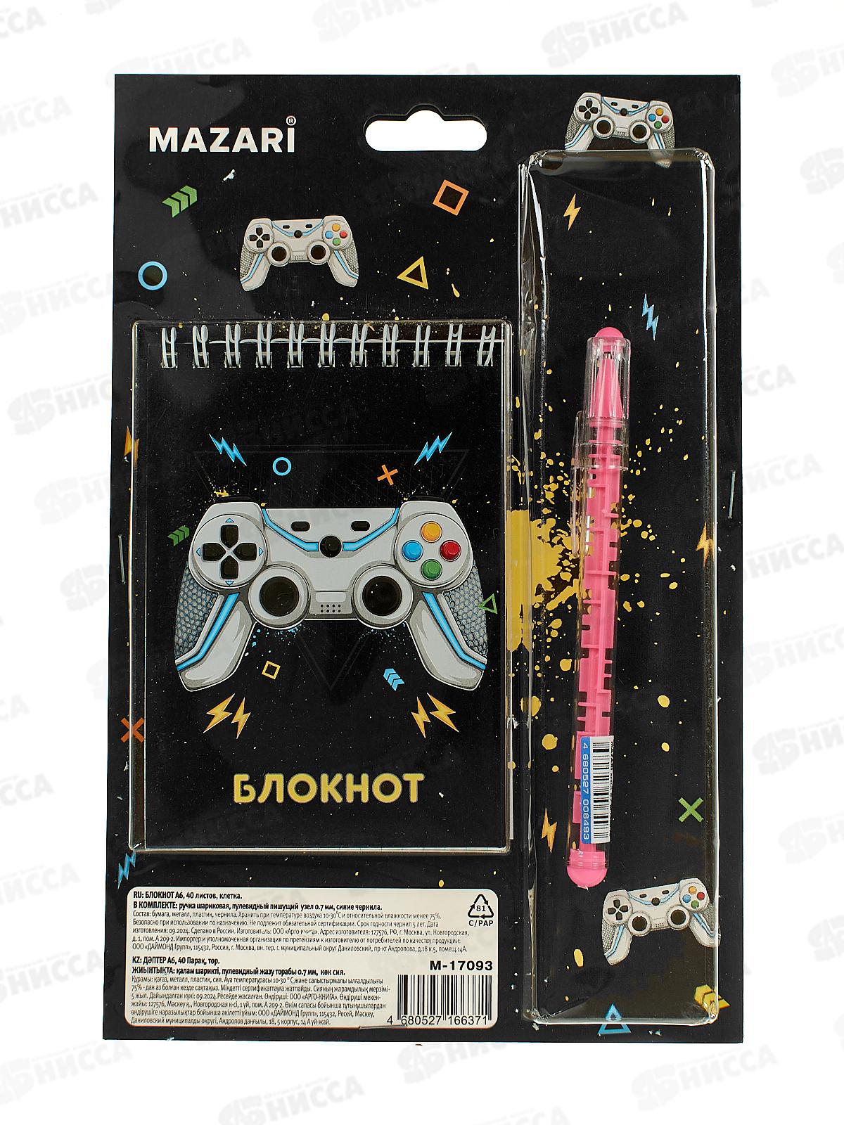 Блокнот 40л MAZARI А6 карт.обл.греб,+ ручка, M-17093*100