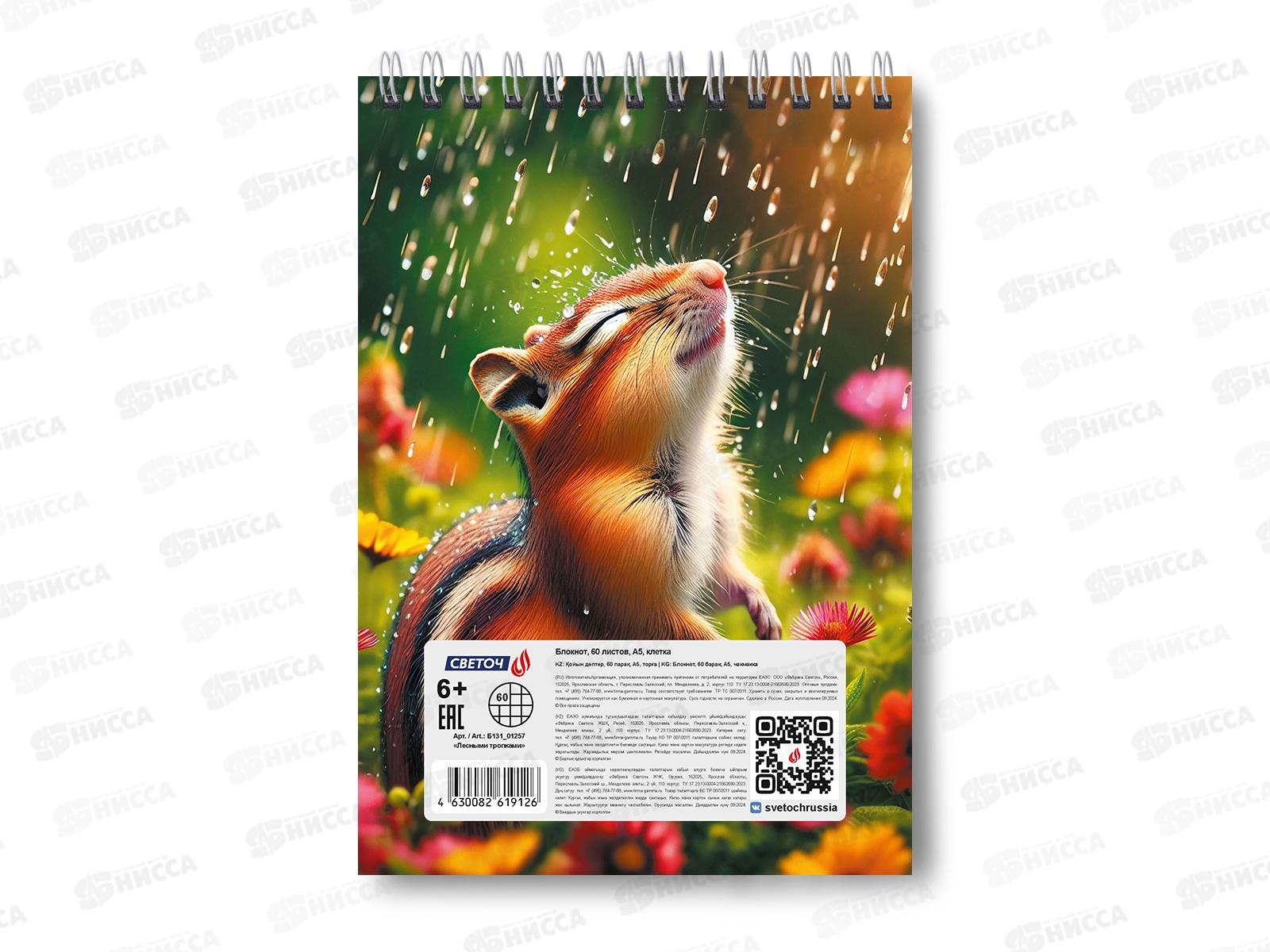 Блокнот 60л SVETOCH А5 Лесными тропками, клетка, гребень, 01257