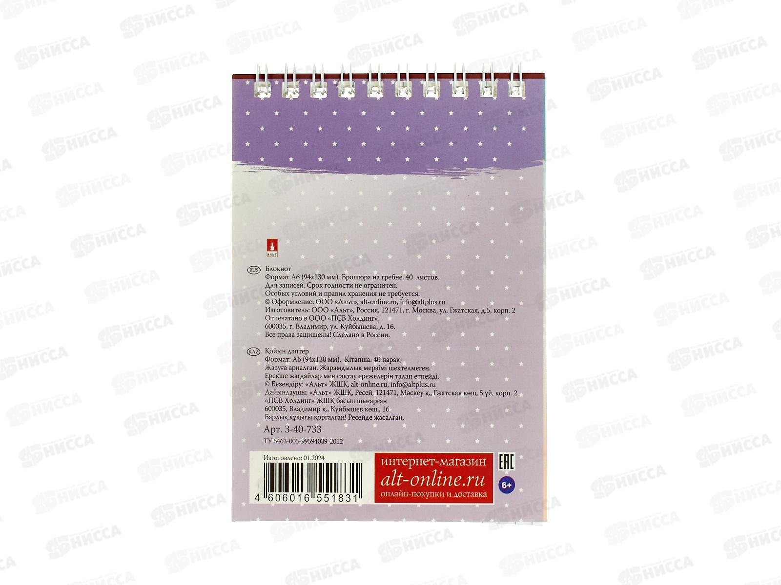 Блокнот 40л АЛЬТ А6 Kids. 4 вида 3-40-733 *50