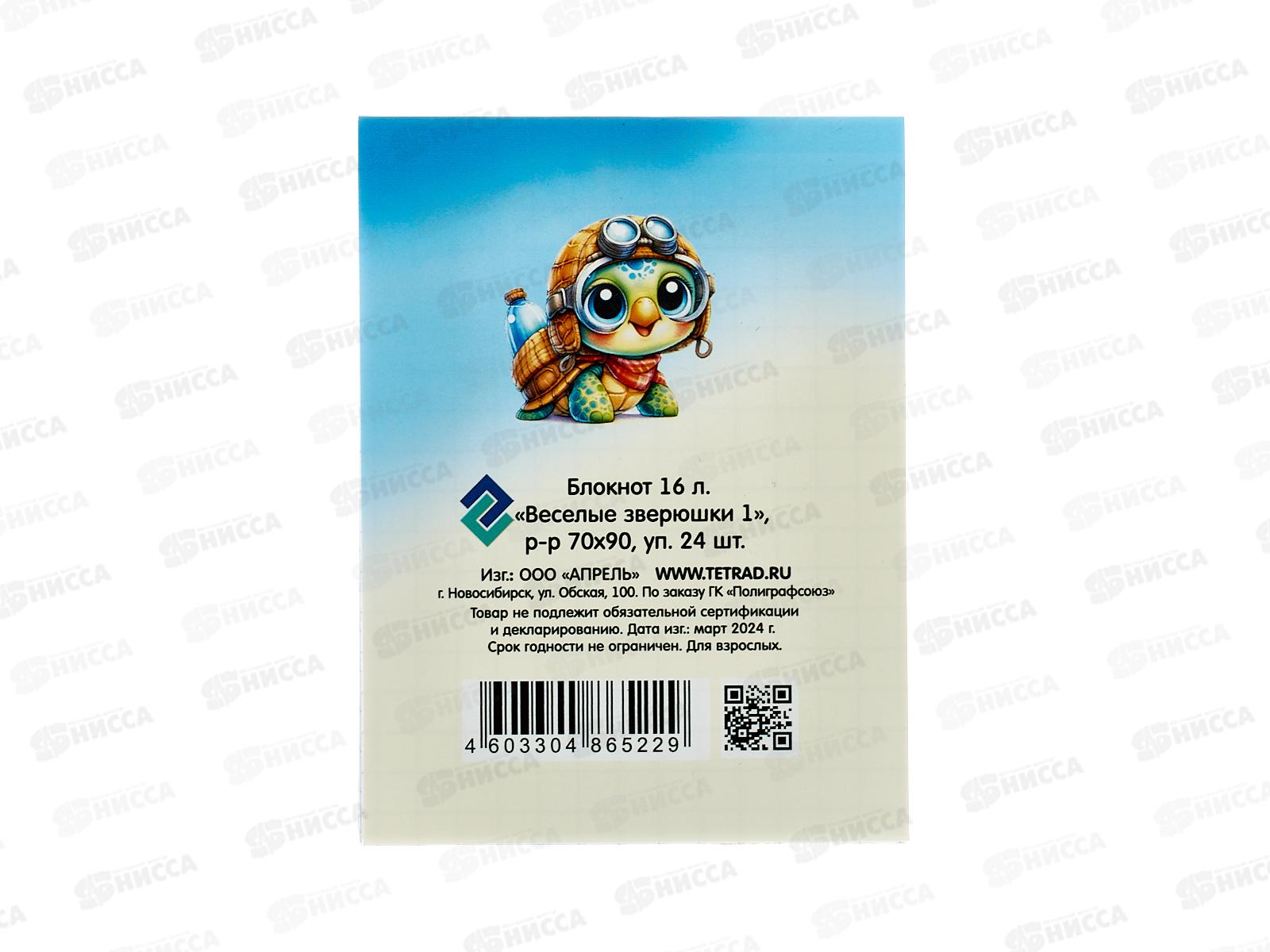 Блокнот 16л ПГС Веселые зверюшки 1, А7 *24