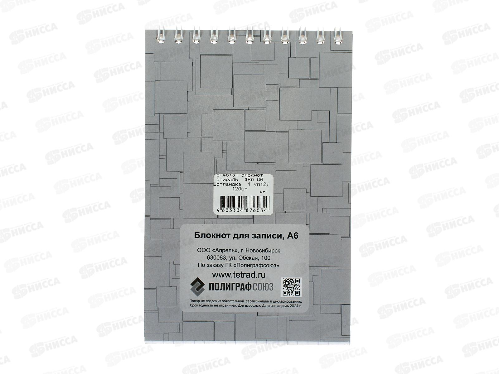 Блокнот 48л ПГС Шотландка, А6, греб. *12