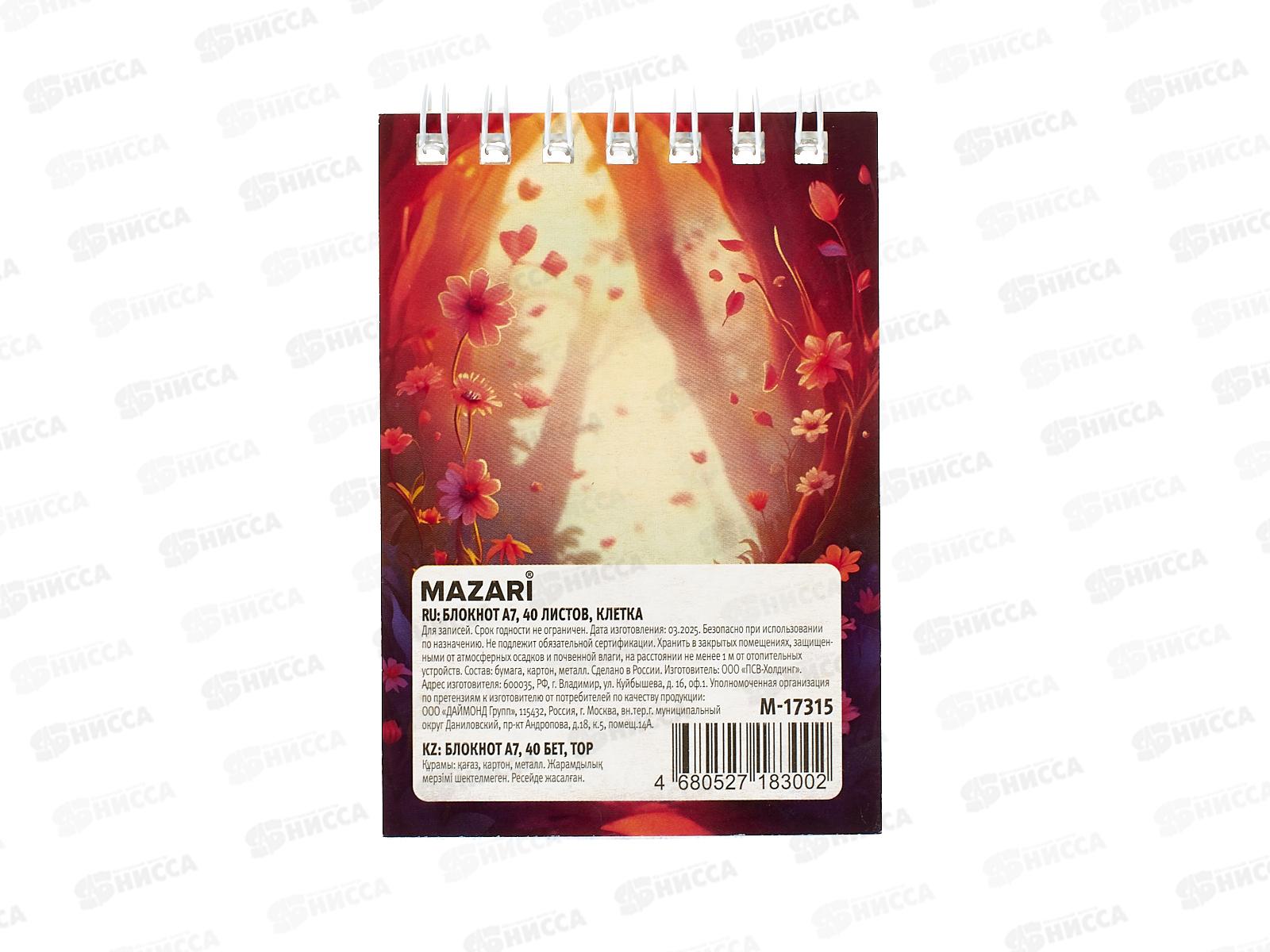 Блокнот 40л MAZARI А7 карт.обл.греб, M-17315 *132