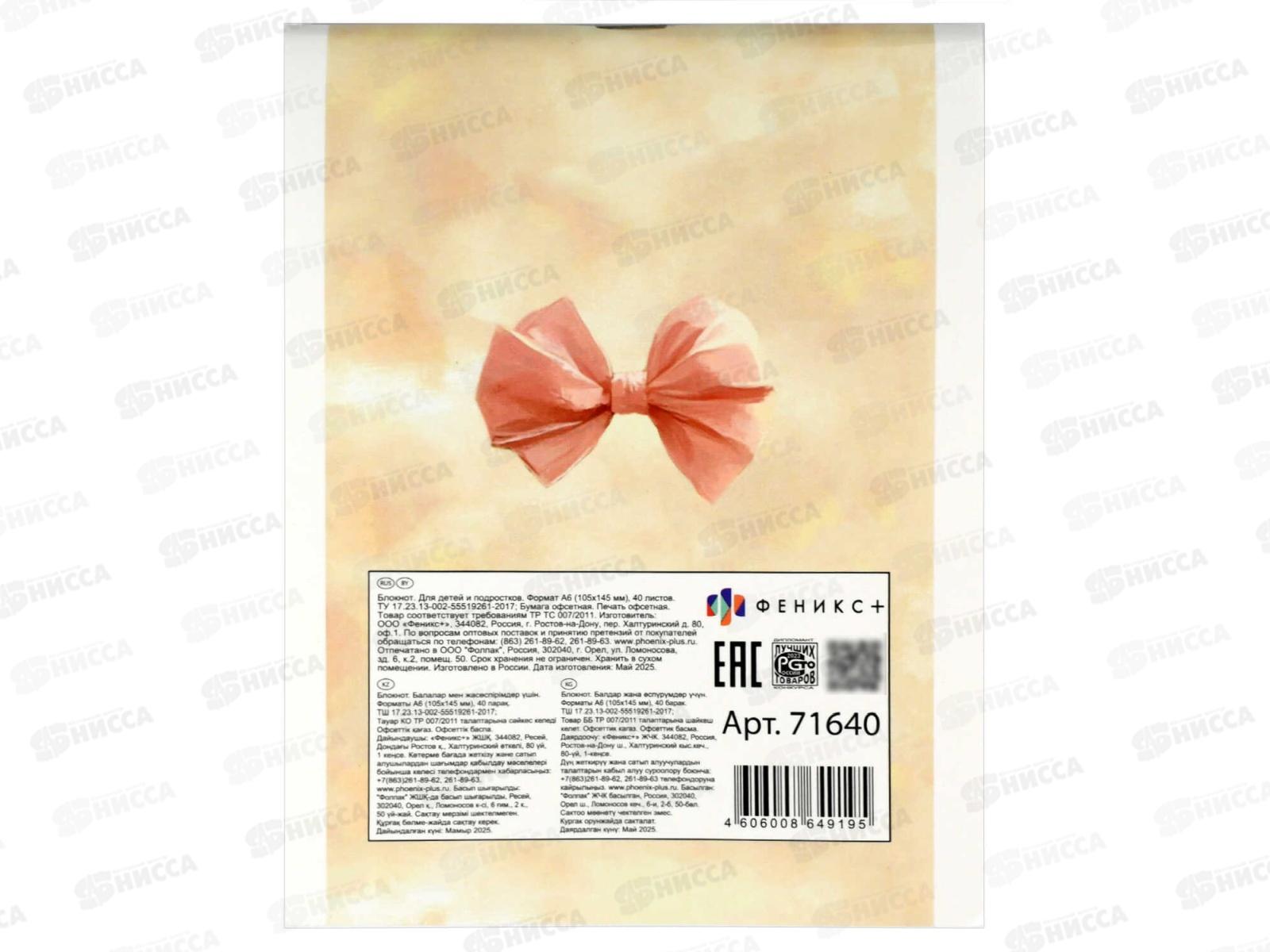 Блокнот 40л ФЕН А6 Котенок с плюшевым мишкой, 71640 *5/80