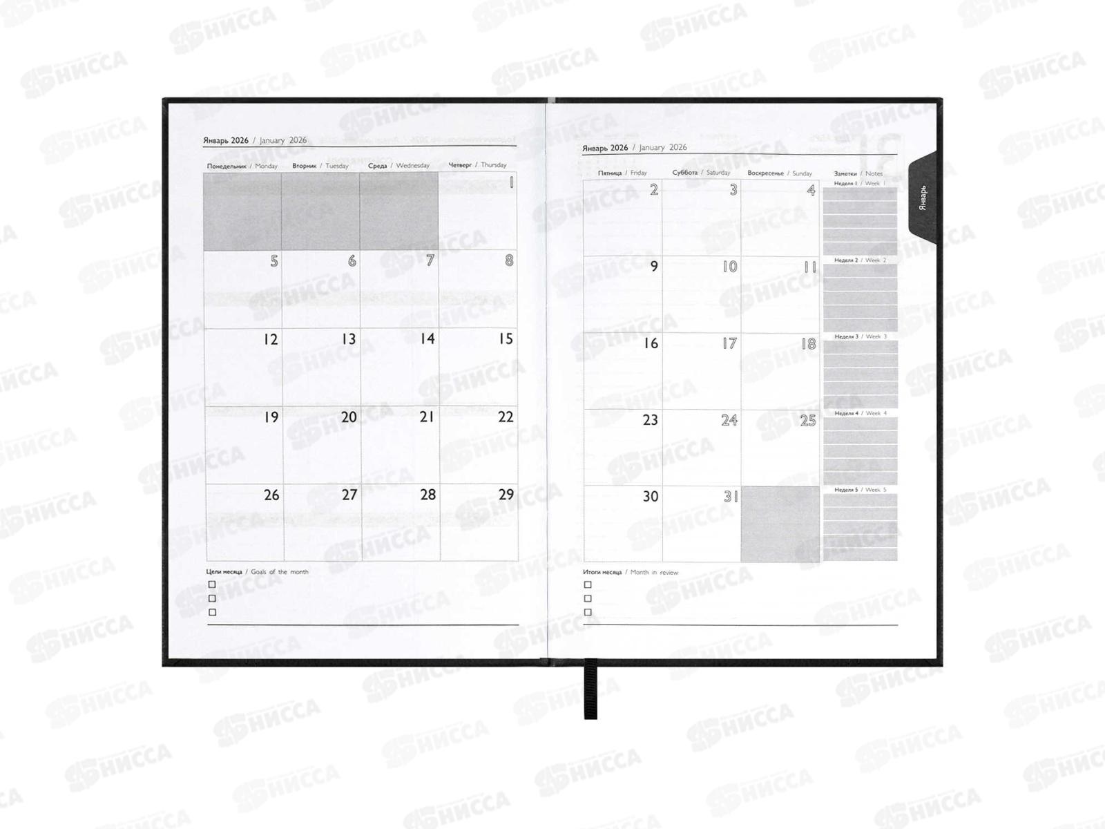 Ежедневник 2026 ФЕН А5 176л. Наппа кожзам.тв.перепл. Черный. 70224