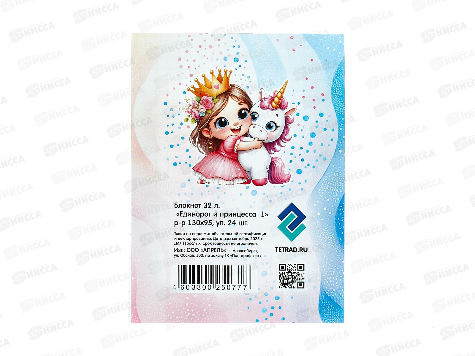 Блокнот 32л ПГС Единорог и принцесса А6 *24