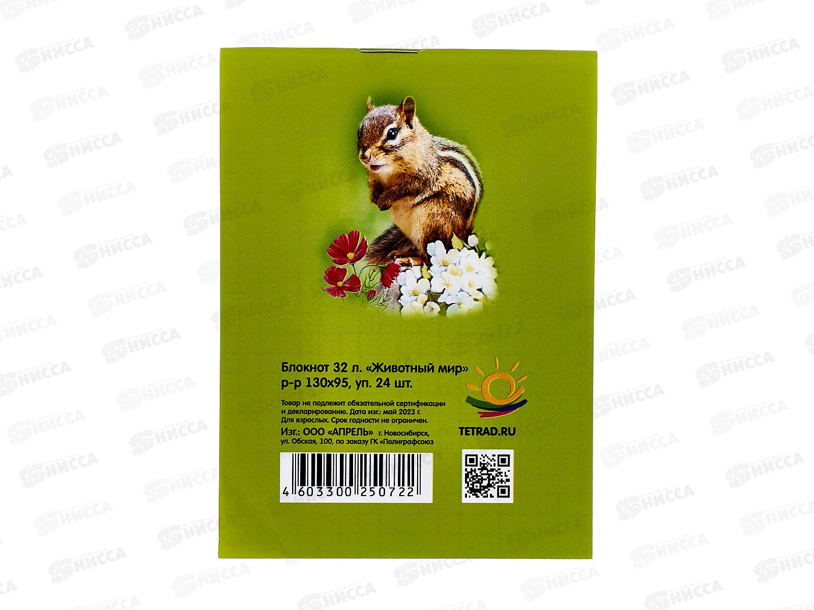 Блокнот 32листа ПГС Животный мир, 95*130 *24