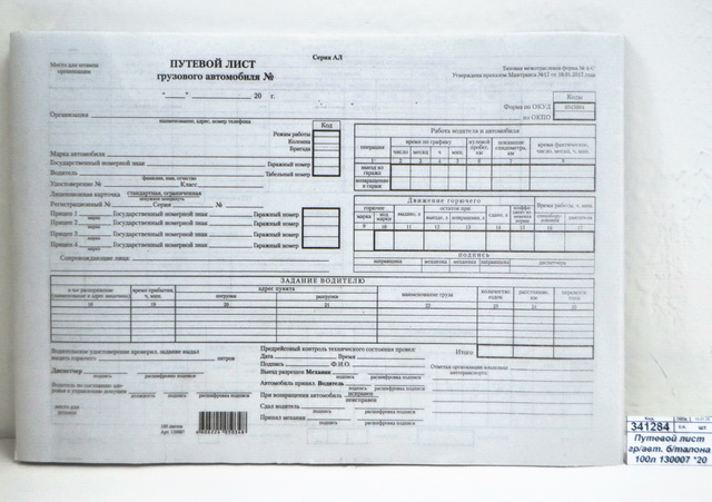 Путевой лист грузовой автомобиль без талона 100л 130007 *10