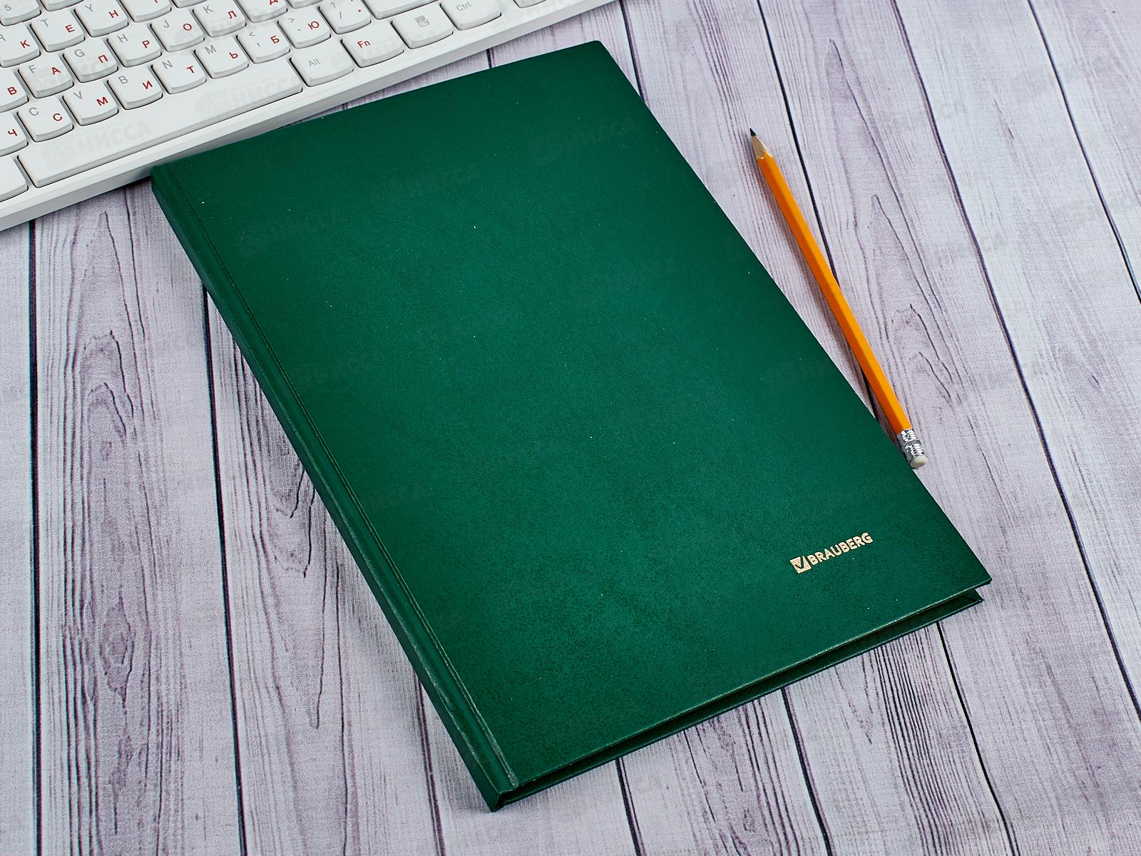 Книга учета BRAU 96листов клетка А4 зеленая, бумвинил, 130222 *10