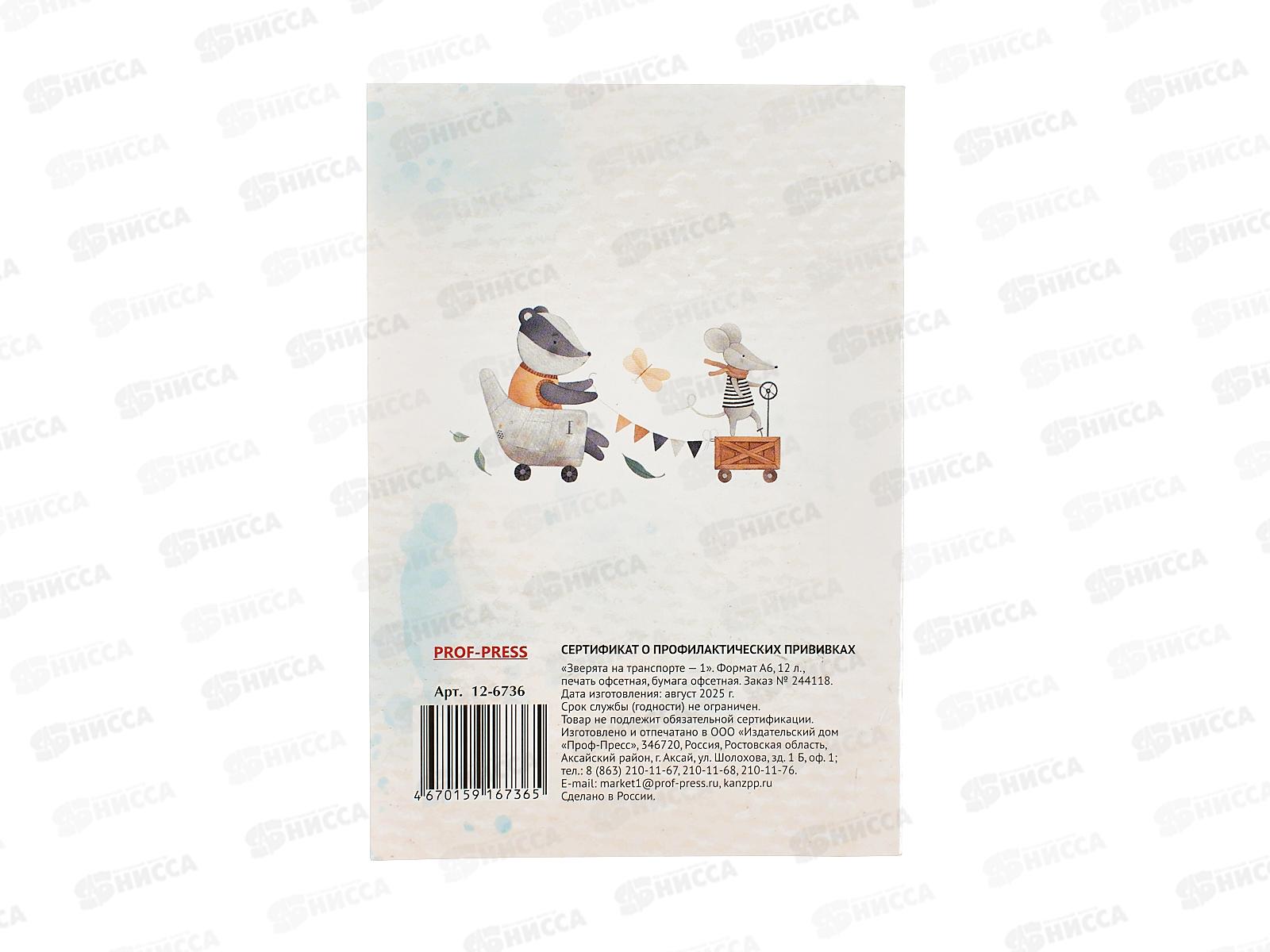 Сертификат о профилактических прививках ПП А6, 12л Зверята на транспорте, 12-6736