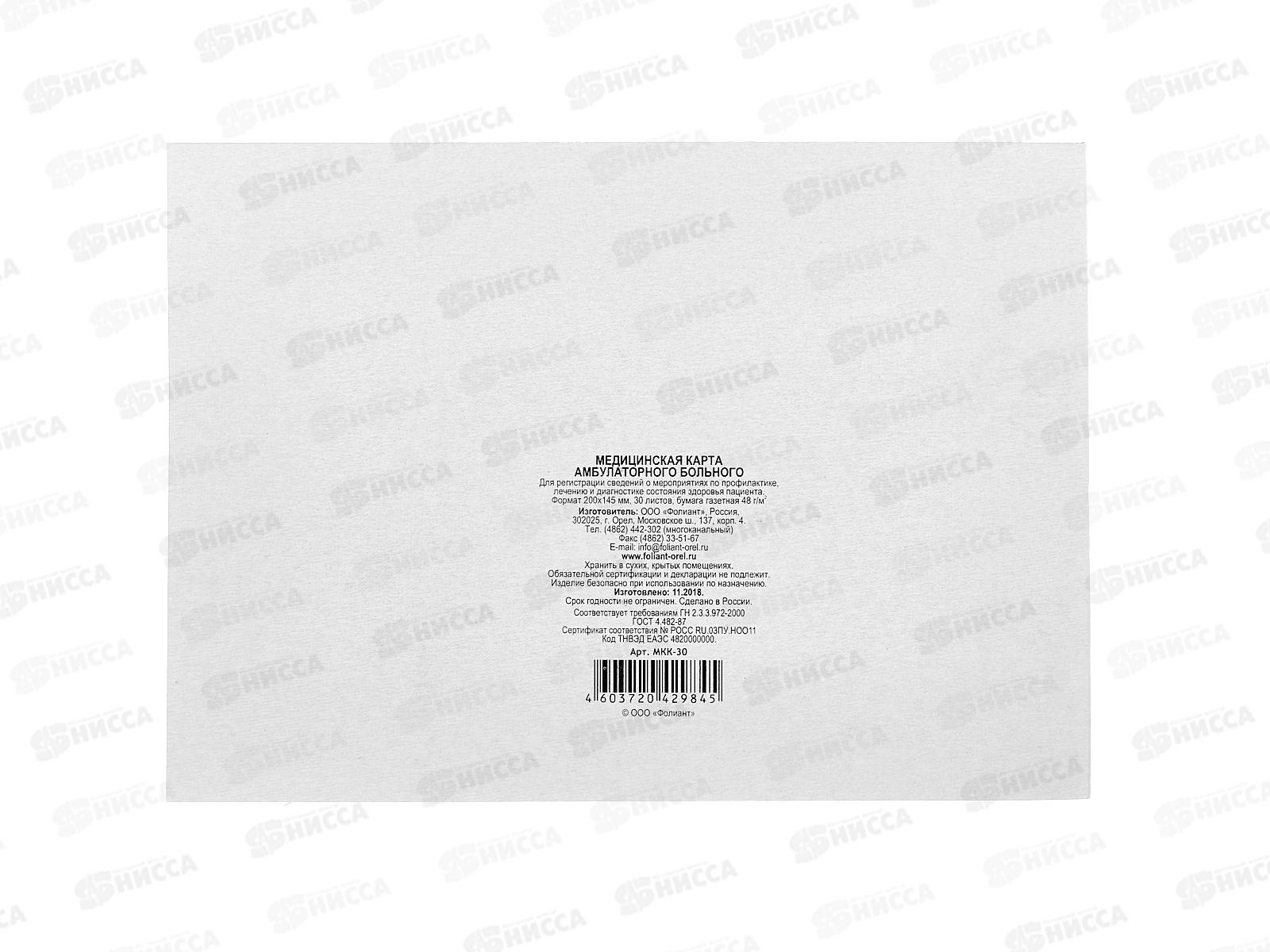 Мед.карта Амбул. больного А5 30л.,Фолиант карт.,газ. МКК-30 *25