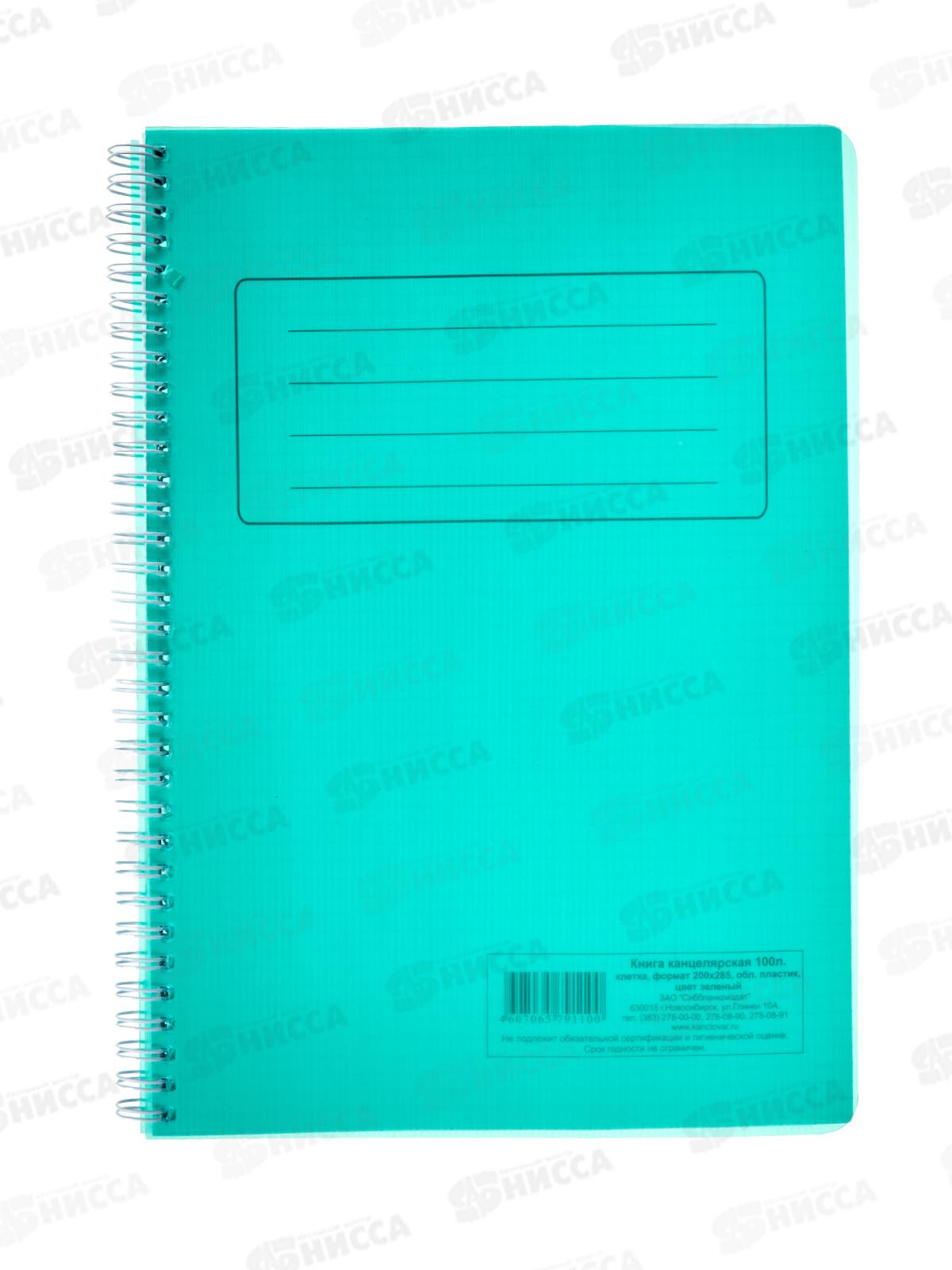Книга канцелярская 100л клетка СБ зелёная пластиковая обложка, на гребне *5
