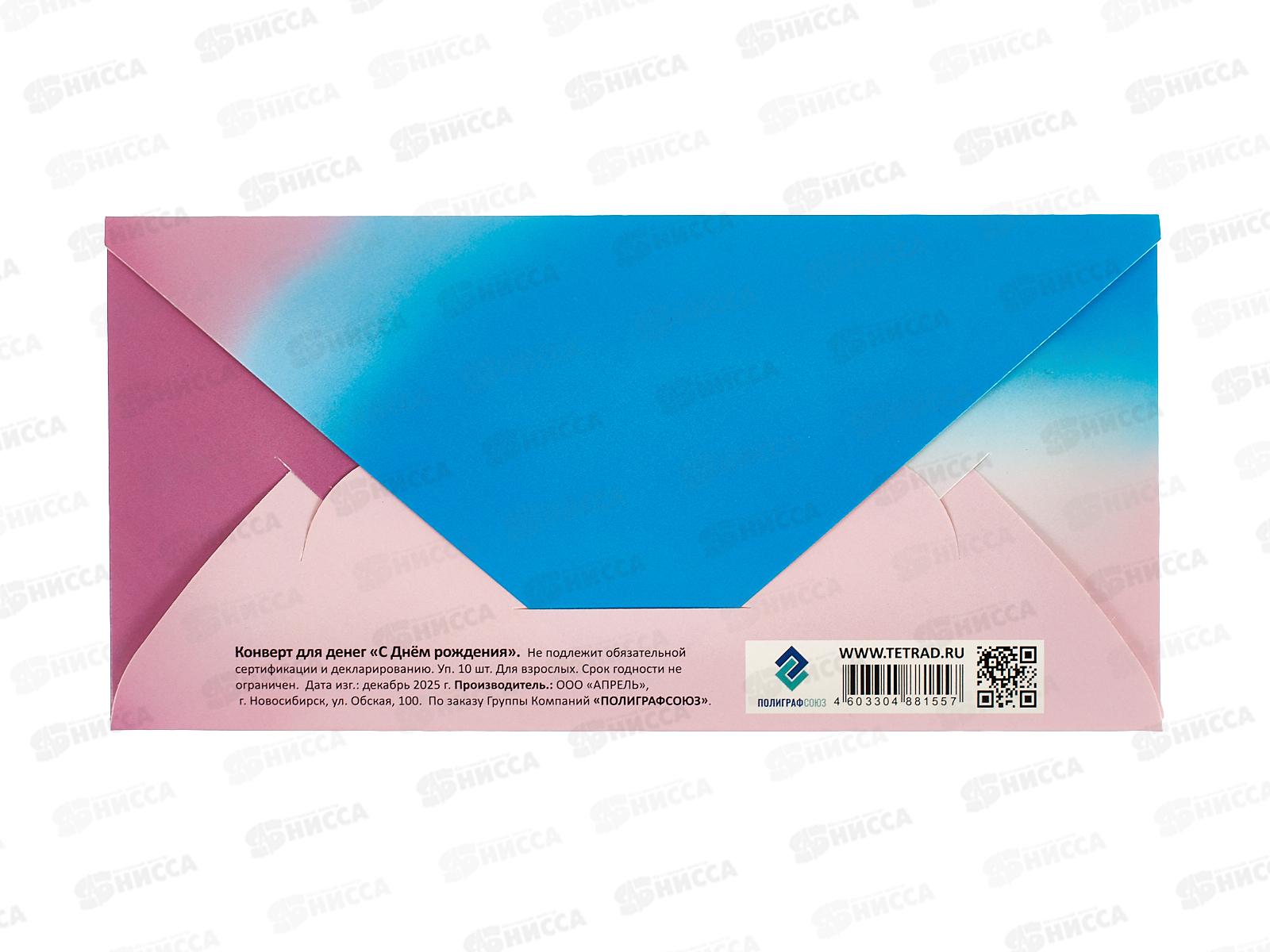 Конверт д/денег ПГС 16,5*8см С Днем Рождения! *10