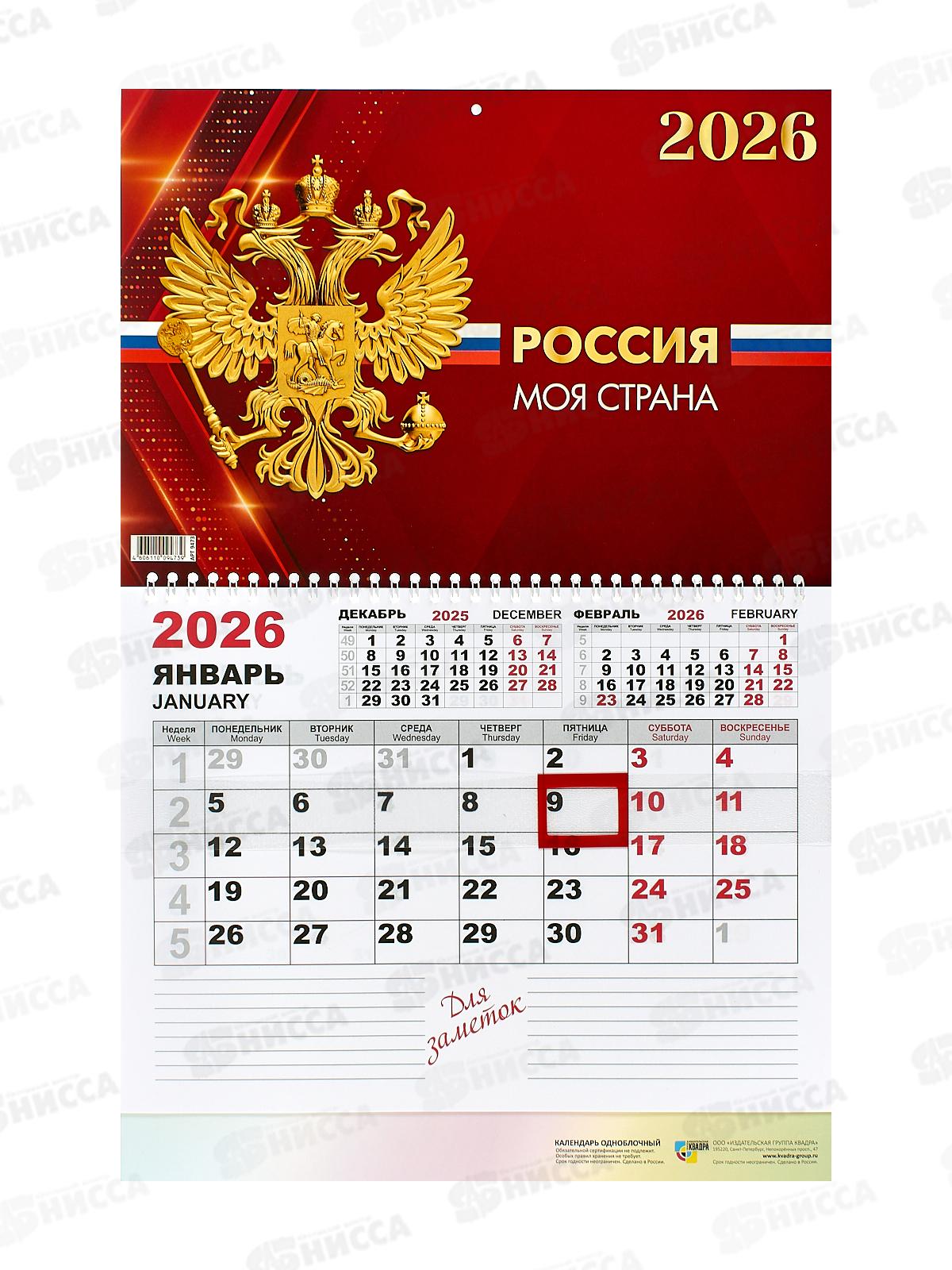 Календарь моно 2026 КП Госсимволика, 9473 *100